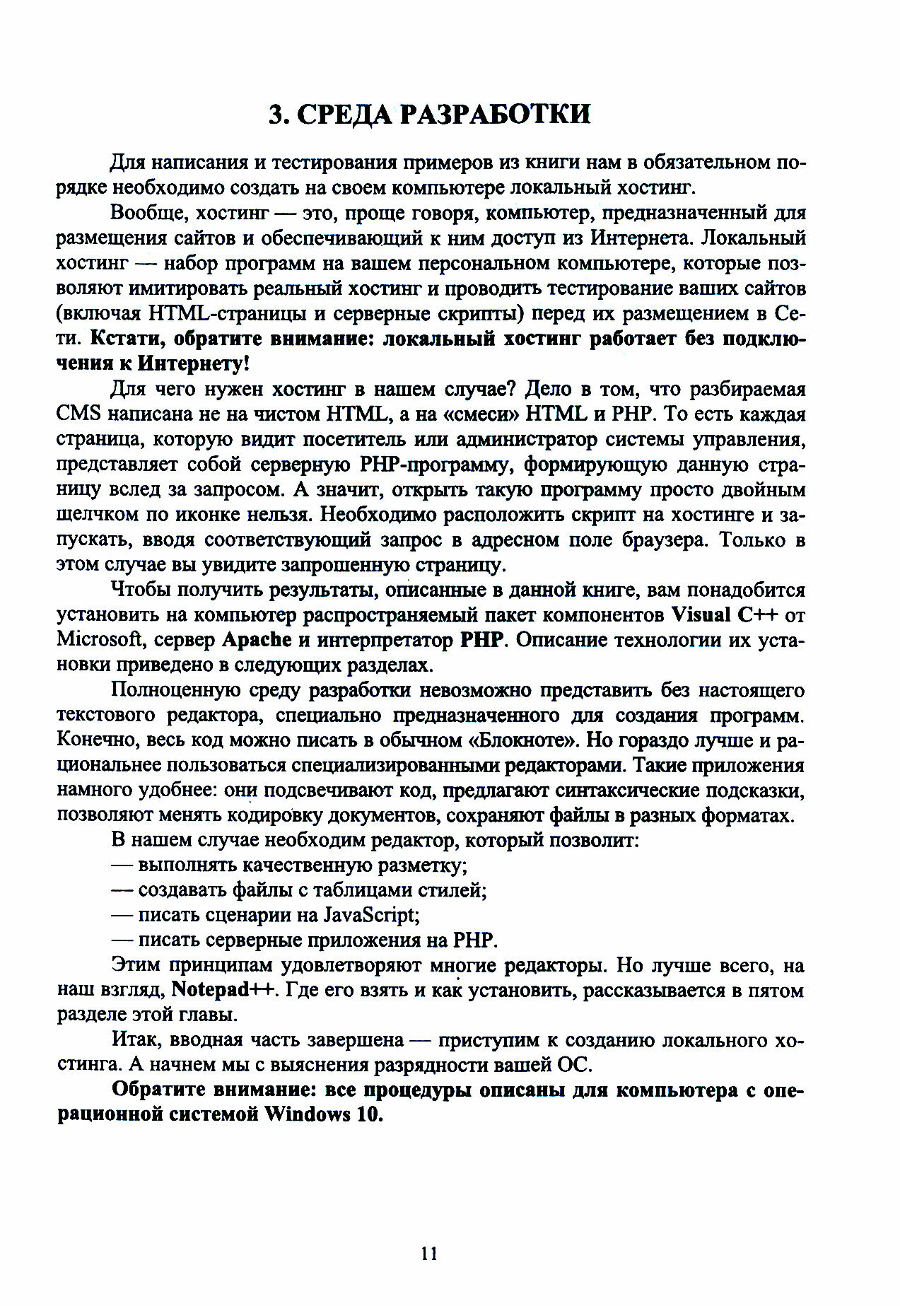 Современные веб-ресурсы невозможно представить без систем управления, которые принято называть Content management system или сокращенно CMS. Многие разработчики используют не готовые CMS, например Word-Press, Joomla, Drupal, 1С-Битрикс, а пишут собственные. Для опытного программиста разработка подобной системы видится вполне реальной. Для начинающих это серьезный труд. Но если есть желание, то все «подводные камни» удастся преодолеть. А поможет в этом данная книга. В ней рассказывается о механизмах разработки очень простой, но вполне работоспособной CMS, которую можно использовать для создания и управления небольшими сайтами. По сути, это рассказ о первых шагах, с которых начинается освоение такой интересной стези, как написание CMS. Естественно, что, изучив предложенное автором программное обеспечение, вы можете пойти дальше и существенно нарастить его функционал или, используя полученные навыки, разработать собственный вариант системы управления. Рекомендовано в качестве дополнительной литературы для студентов вузов, обучающихся по направлению «Информатика и вычислительная техника». Освоить материал книги вам поможет zip-архив с полным набором файлов рассмотренной CMS. Вы сможете запустить систему на своем компьютере. Для этого книга содержит подробные инструкции по созданию локального хостинга на ПК. Дополнительные материалы доступны в электронной библиотечной системе «Лань» по ссылке или QR-коду, указанным ниже.
