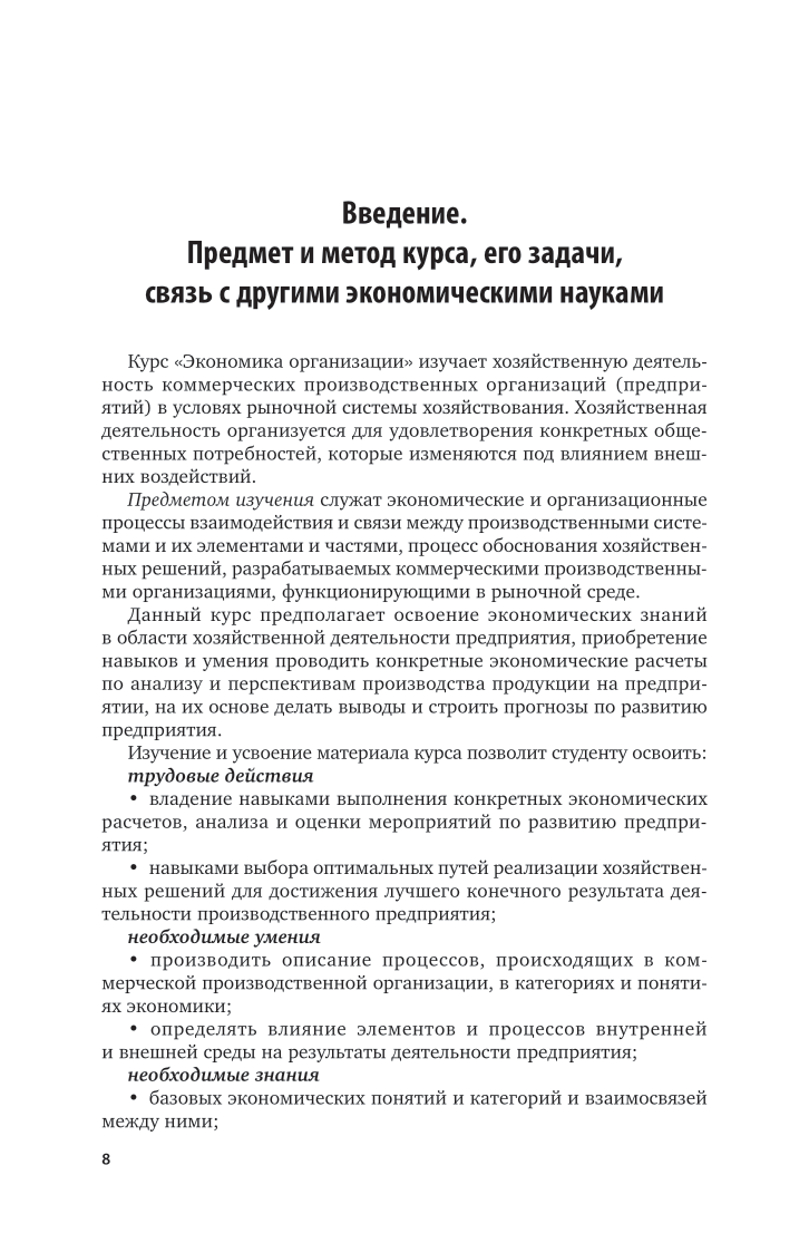 В курсе изложены все стороны деятельности предприятия с момента выбора организационно-правовой формы, организации производства и управления, реализации продукции и формирования прибыли до анализа результатов деятельности и выбора направлений дальнейшего развития. При изучении курса вырабатываются навыки анализа конкретных ситуаций в деятельности субъекта хозяйствования, что позволяет принимать верные решения по выбору направлений дальнейшего развития деятельности предприятия. Соответствует актуальным требованиям Федерального государственного образовательного стандарта среднего профессионального образования и профессиональным требованиям. Для студентов образовательных учреждений среднего профессионального образования, обучающихся по экономическим специальностям.
