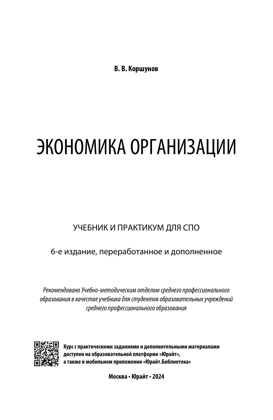 Экономика организации 6-е изд. пер. и доп. Учебник и практикум для СПО (Владимир Владимирович Коршунов), 2023
