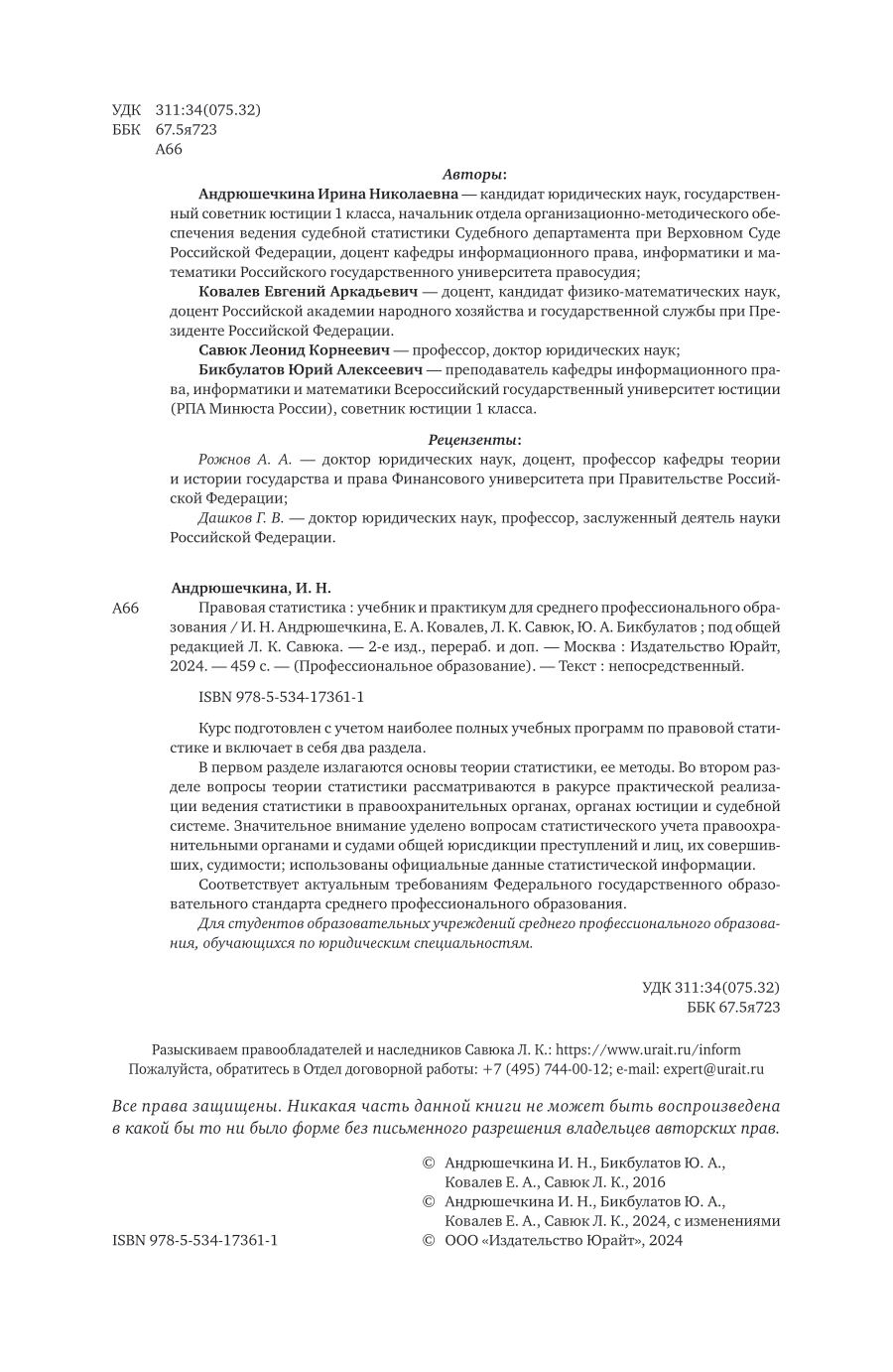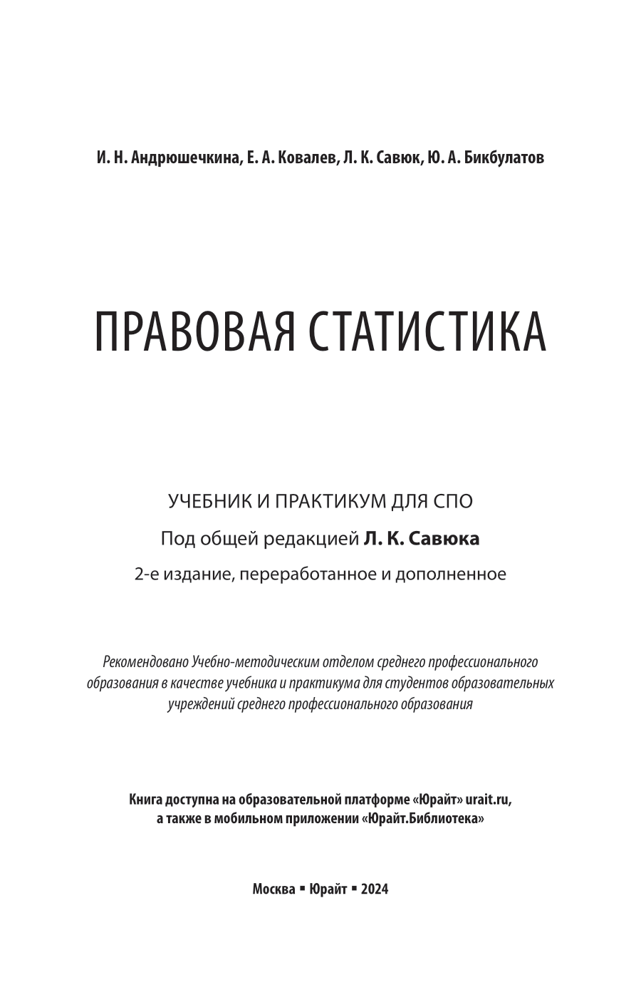 Правовая статистика 2-е изд. пер. и доп. Учебник и практикум для СПО (Леонид Корнеевич Савюк); ЮРАЙТ, 2024