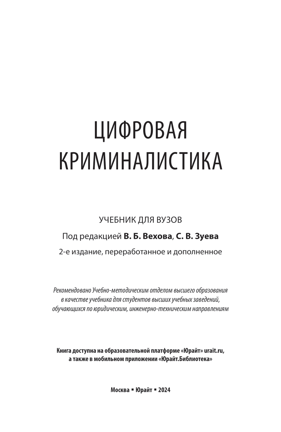 Цифровая криминалистика 2-е изд. пер. и доп. Учебник для вузов (Дмитрий Валерьевич Бахтеев); ЮРАЙТ, 2024