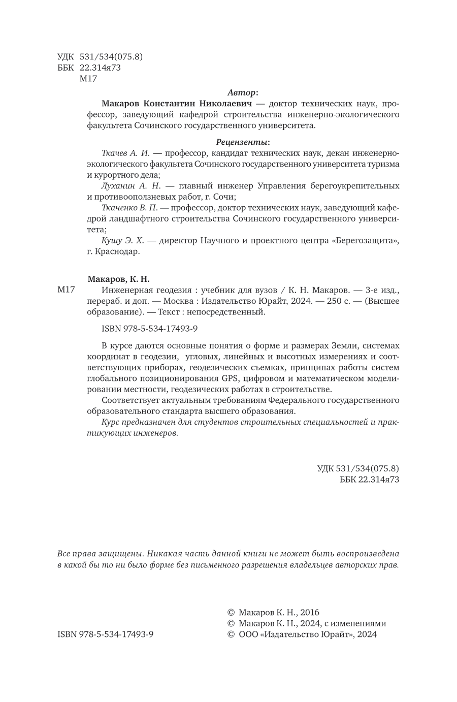 Инженерная геодезия 3-е изд. пер. и доп. Учебник для вузов (Константин Николаевич Макаров); ЮРАЙТ, 2024