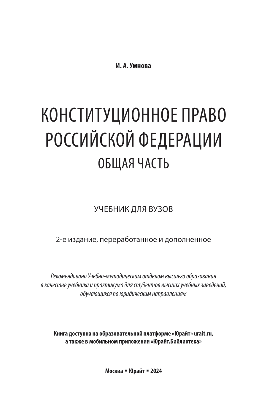 Конституционное право Российской Федерации. Общая часть 2-е изд. пер. и доп. Учебник для вузов (Ирина Анатольевна Конюхова); ЮРАЙТ, 2024