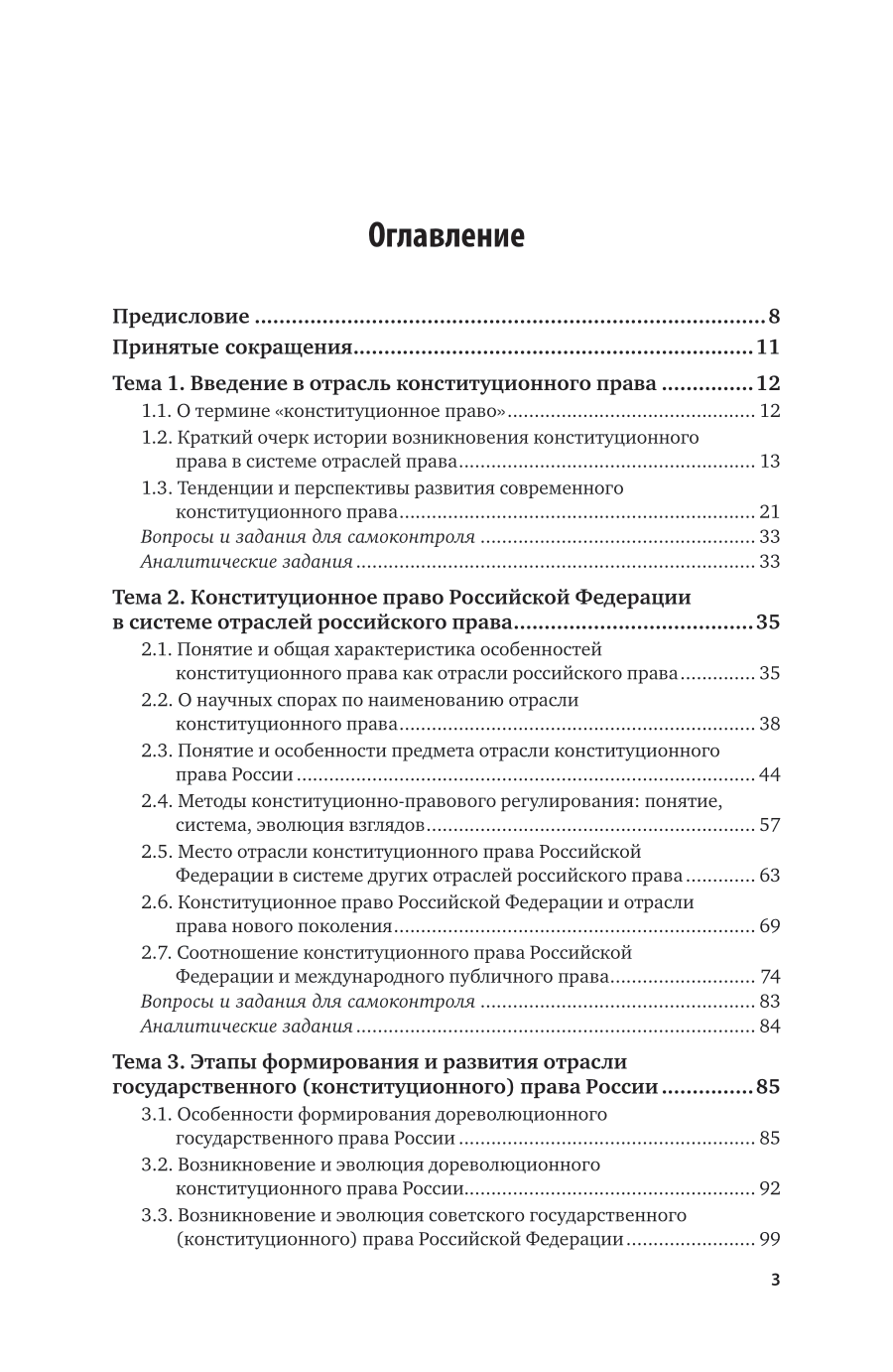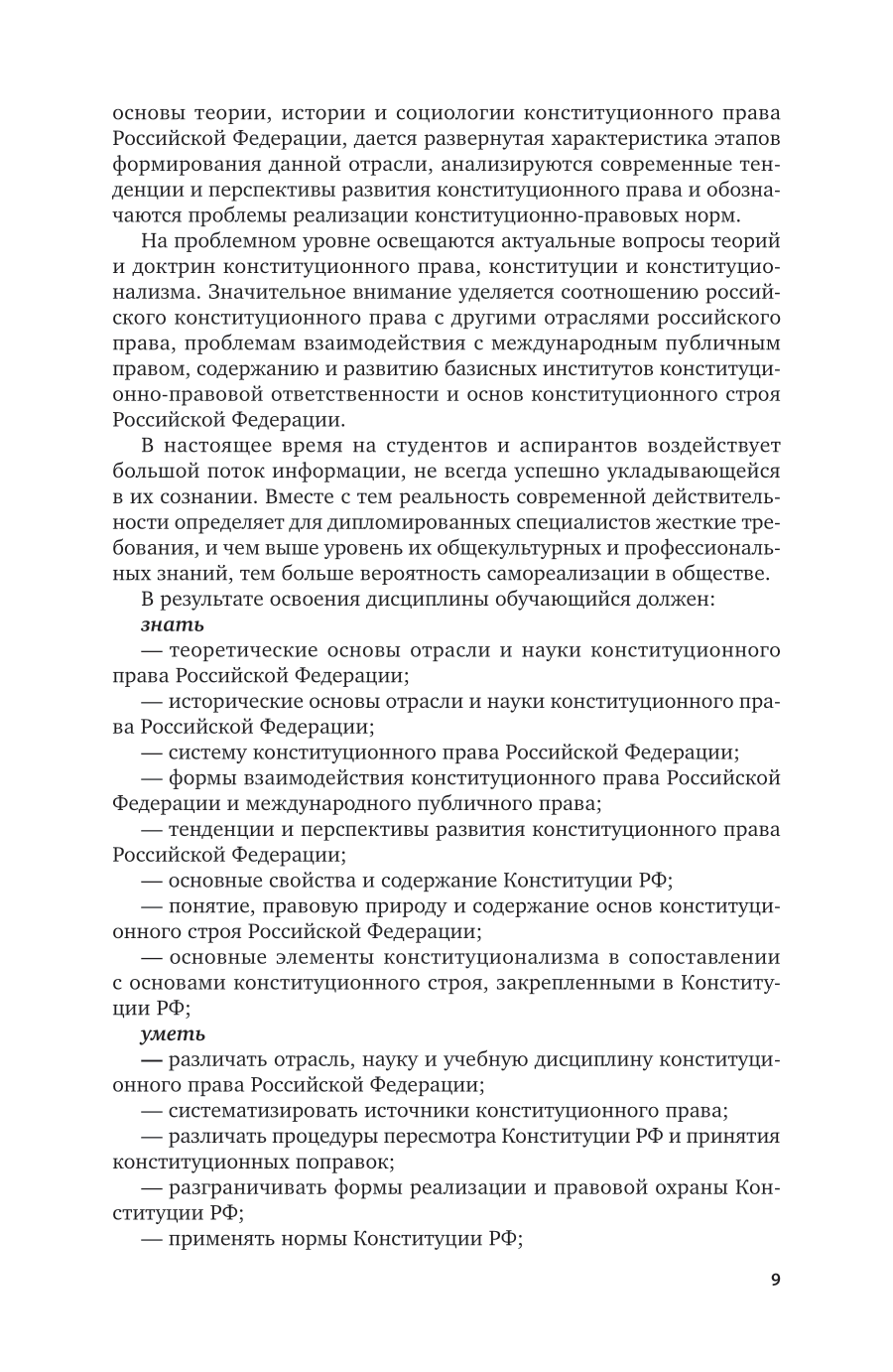 Курс раскрывает теоретические и правовые основы истории и социологии конституционного права Российской Федерации. Он ориентирует на углубленное изучение конституционного права России, дает развернутую характеристику этапов формирования данной отрасли, современных тенденций и перспектив развития конституционного права, механизма реализации конституционно-правовых норм. На проблемном уровне освещаются актуальные вопросы теорий и доктрин конституционного права, конституции и конституционализма. Значительное внимание уделяется соотношению российского конституционного права с другими отраслями российского права, проблемам взаимодействия с международным публичным правом. Соответствует требованиям Федерального государственного образовательного стандарта высшего образования. Для студентов вузов, обучающихся по юридическим направлениям.