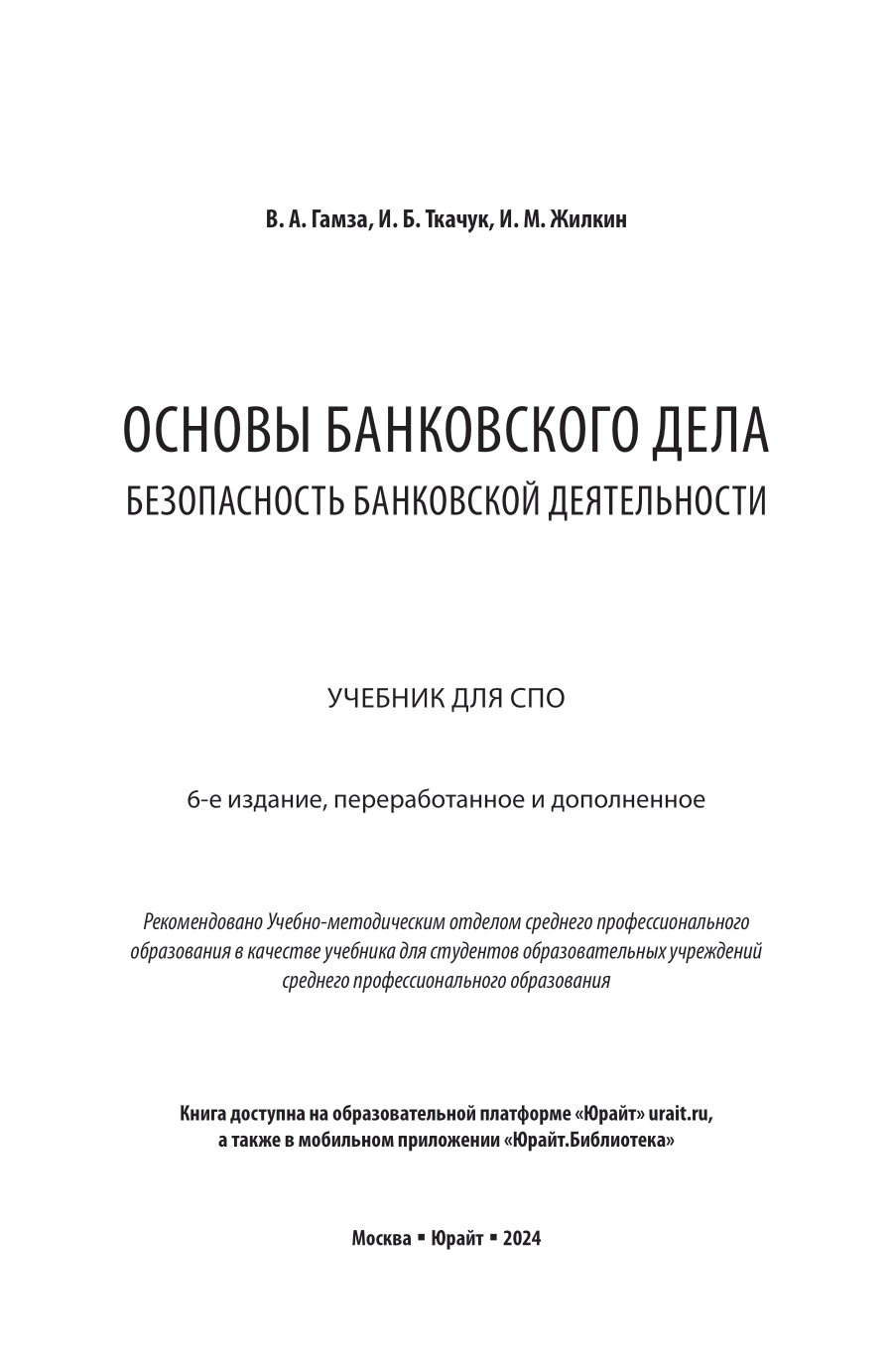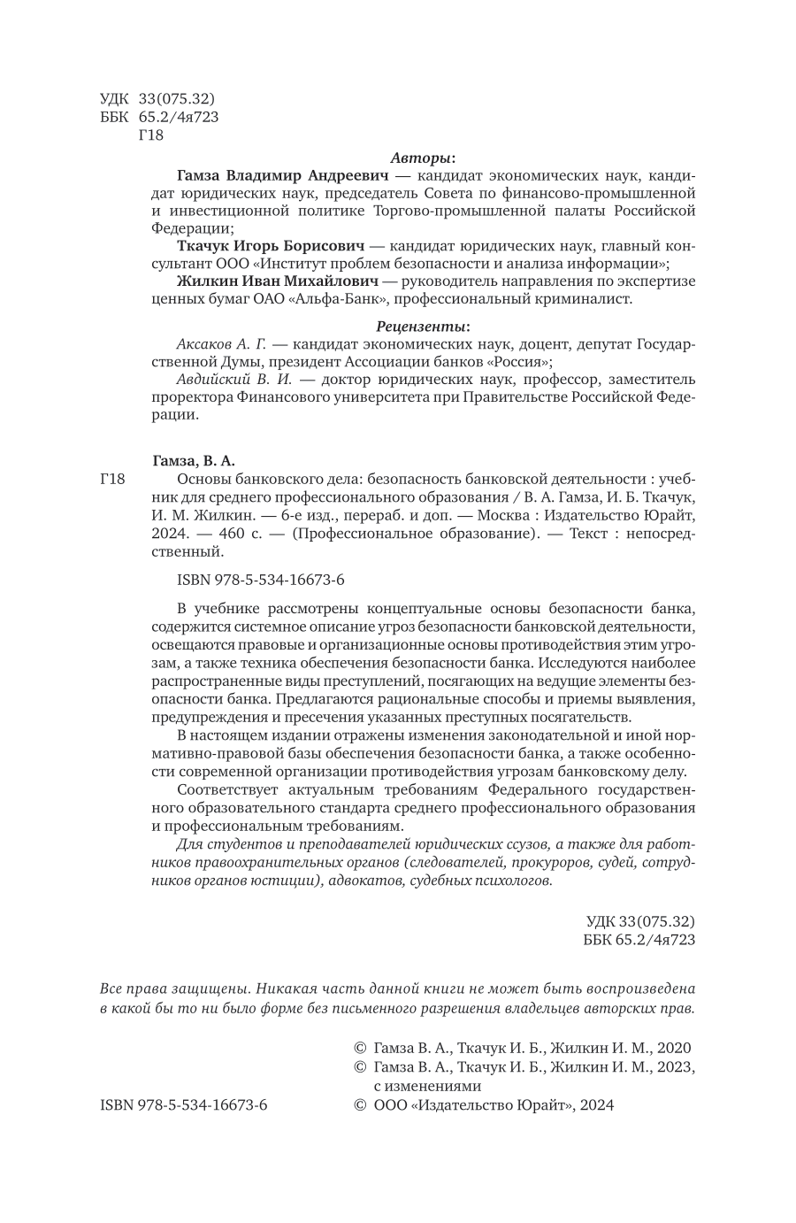 Основы банковского дела: безопасность банковской деятельности 6-е изд. пер. и доп. Учебник для СПО (Владимир Андреевич Гамза); ЮРАЙТ, 2024