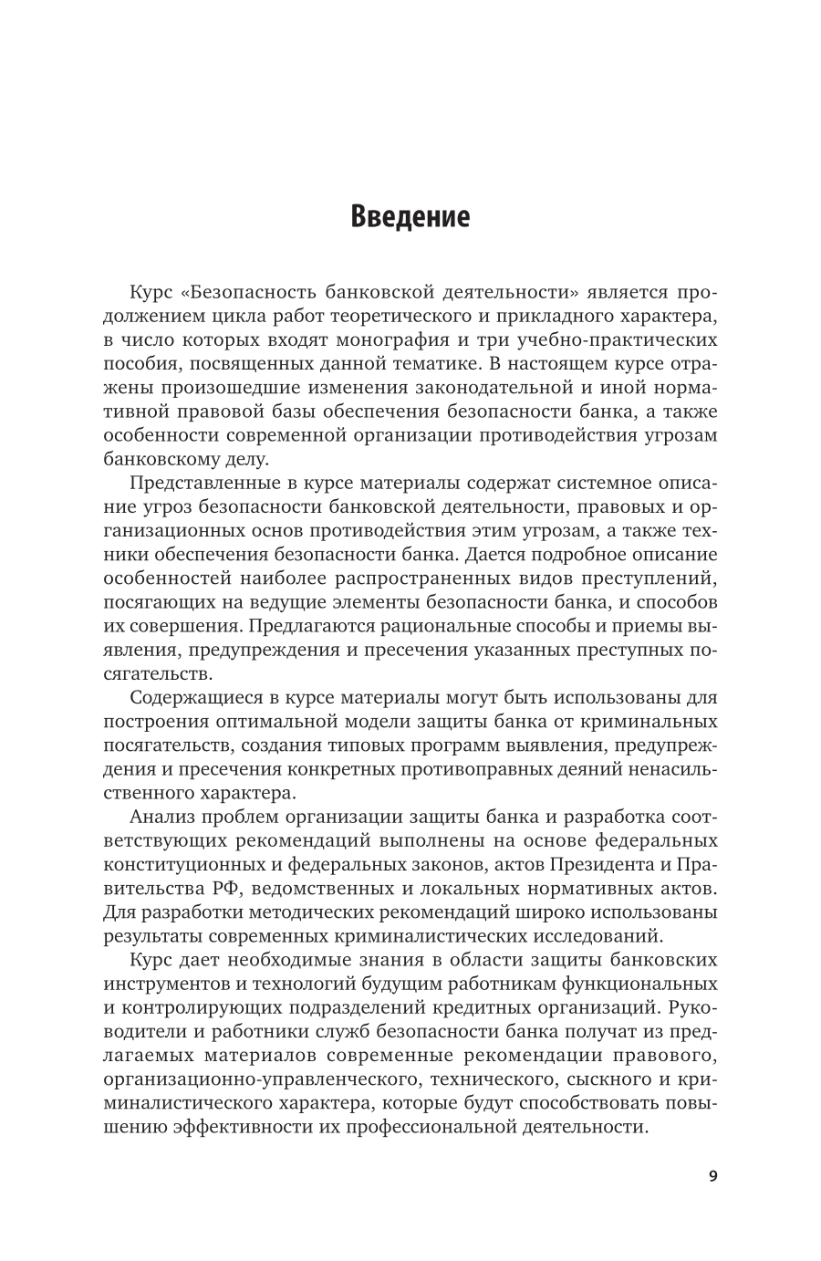 В учебнике рассмотрены концептуальные основы безопасности банка, содержится системное описание угроз безопасности банковской деятельности, освещаются правовые и организационные основы противодействия этим угрозам, а также техника обеспечения безопасности банка. Исследуются наиболее распространенные виды преступлений, посягающих на ведущие элементы безопасности банка. Предлагаются рациональные способы и приемы выявления, предупреждения и пресечения указанных преступных посягательств. В настоящем издании отражены изменения законодательной и иной нормативно-правовой базы обеспечения безопасности банка, а также особенности современной организации противодействия угрозам банковскому делу. Соответствует актуальным требованиям Федерального государственного образовательного стандарта среднего профессионального образования и профессиональным требованиям. Для студентов и преподавателей юридических ссузов, а также для работников правоохранительных органов (следователей, прокуроров, судей, сотрудников органов юстиции), адвокатов, судебных психологов.