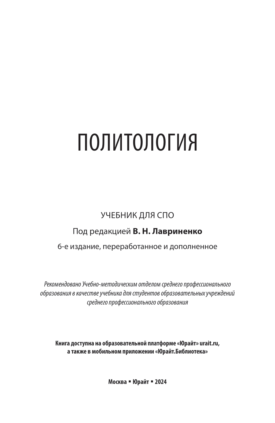 Политология 6-е изд. пер. и доп. Учебник для СПО (Олег Федорович Шабров); ЮРАЙТ, 2024