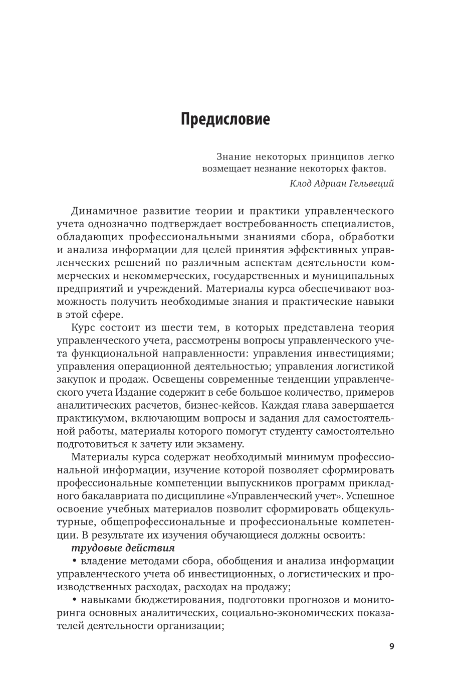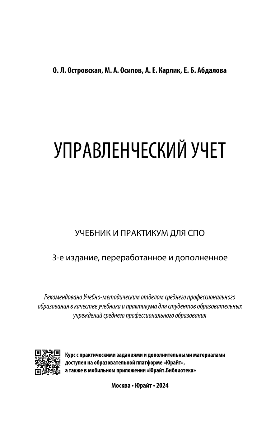 Материалы учебника содержат в себе необходимый минимум профессиональной информации, изучение которой позволяет сформировать профессиональные компетенции студентов, изучающих дисциплину «Управленческий учет». Успешное освоение учебных материалов позволит сформировать общекультурные, общепрофессиональные и профессиональные компетенции. В конце каждой главы представлен практикум, включающий вопросы и задания для самостоятельной работы, который поможет студенту самостоятельно подготовиться к зачету или экзамену. Соответствует актуальным требованиям федеральных государственных образовательных стандартов среднего профессионального образования и профессиональным требованиям. Предназначено для студентов образовательных учреждений среднего профессионального образования, обучающихся по экономическим специальностям.