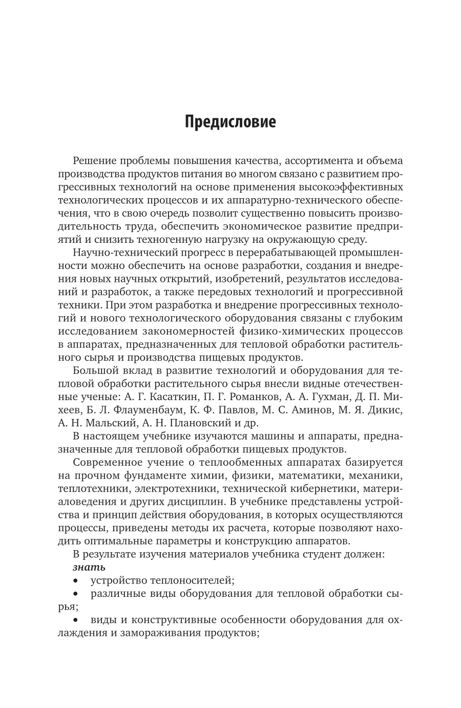 В учебнике описано тепловое оборудование пищевых предприятий для переработки растительного сырья с учетом последних достижений в науке и технике. Рассмотрены конструкции, устройство и принцип работы теплового оборудования. Описаны вопросы физической сущности и дано теоретическое обоснование процессов, возникающих при работе оборудования. Приведены технологические, тепловые и конструктивные расчеты.