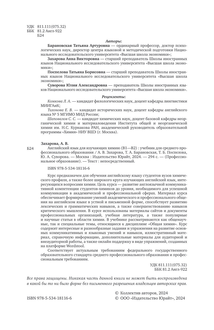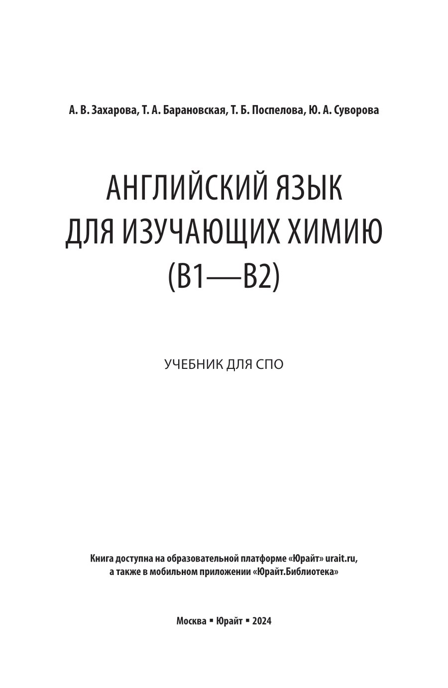 Английский язык для изучающих химию (B1 - B2). Учебник для СПО (Татьяна Артуровна Барановская); ЮРАЙТ, 2024