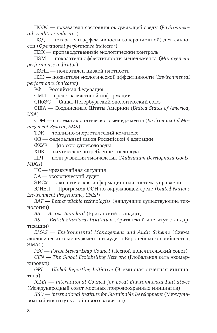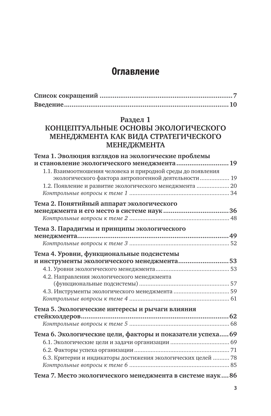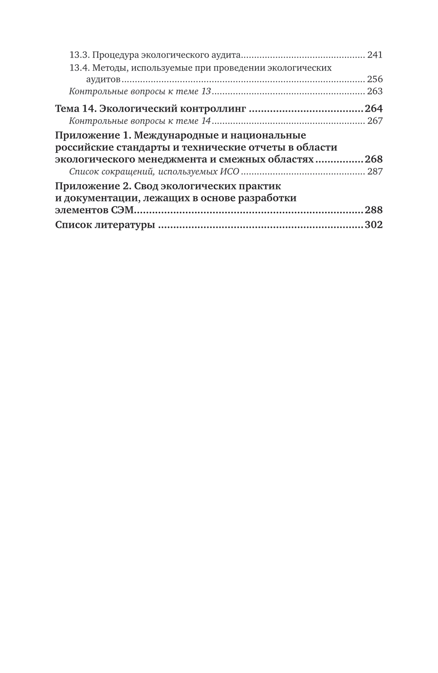 В настоящем курсе предпринята попытка обобщить теоретико-методологические основы экологического менеджмента и осветить его основной инструментарий, применяемый для решения прикладных задач. В курсе обобщаются теоретико-методологические основы экологического менеджмента как вида стратегического менеджмента. Рассмотрены понятийный аппарат, парадигмы и принципы, уровни и направления развития экоменеджмента, концепция стейкхолдеров. Освещаются прикладные инструменты экологического менеджмента: управление потоками материи, экологическая бухгалтерия и экобалансы, оценка жизненного цикла, экологическая маркировка, системы экологического менеджмента, экологический аудит и экологический контроллинг. Дается подробное руководство по внедрению систем экологического менеджмента по стандарту ISO 14001. Соответствует актуальным требованиям федерального государственного образовательного стандарта среднего профессионального образования и профессиональным требованиям. Курс адресован студентам образовательных учреждений среднего профессионального образования, обучающимся по направлению «Экология и природопользование», профилю «Природопользование», а также по экономическим направлениям.
