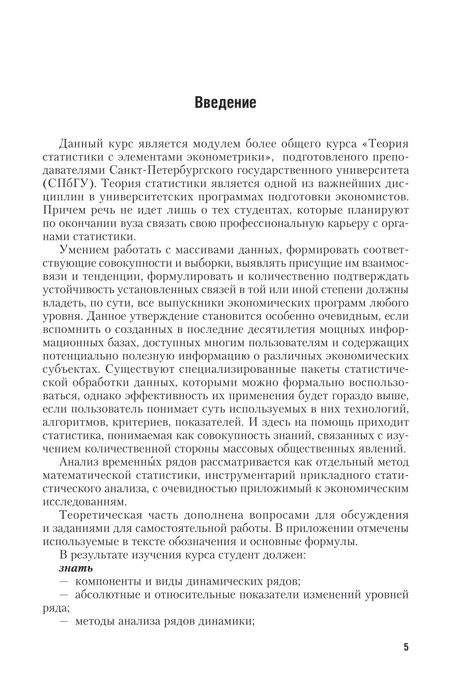 Данный курс является модулем более общего курса «Теория статистики с элементами эконометрики», подготовленого преподавателями Санкт-Петербургского государственного университета (СПбГУ). Теория статистики является одной из важнейших дисциплин в университетских программах подготовки экономистов. Анализ временны?х рядов рассматривается как отдельный метод математической статистики, инструментарий прикладного статистического анализа, с очевидностью приложимый к экономическим исследованиям. Теоретическая часть дополнена вопросами для обсуждения и заданиями для самостоятельной работы. Соответствует актуальным требованиям федерального государственного образовательного стандарта высшего образования. Для студентов и преподавателей экономических вузов, а также специалистов, работающих в области экономики, статистики, аудита.