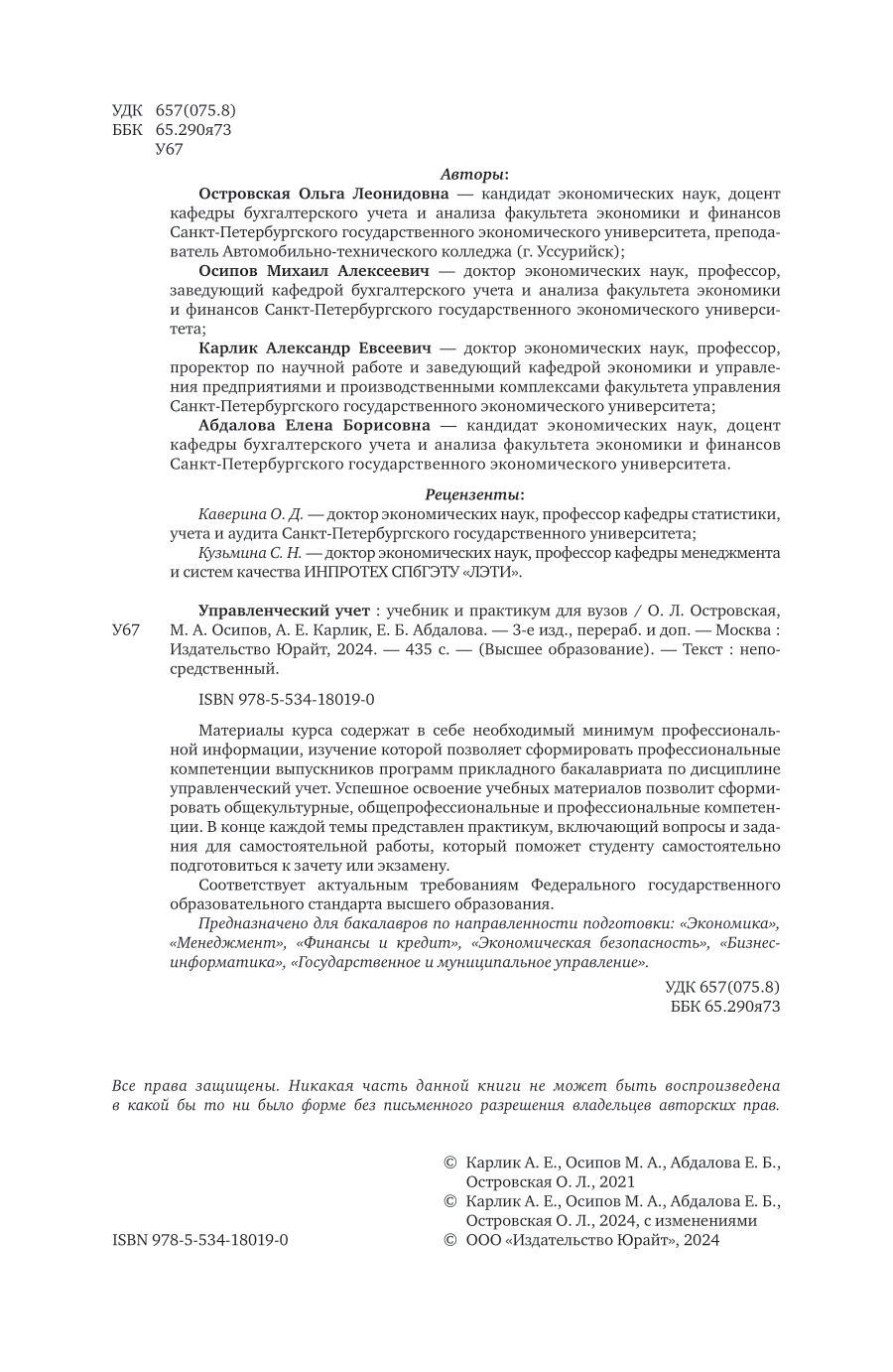Управленческий учет 3-е изд. пер. и доп. Учебник и практикум для вузов (Александр Евсеевич Карлик); ЮРАЙТ, 2024