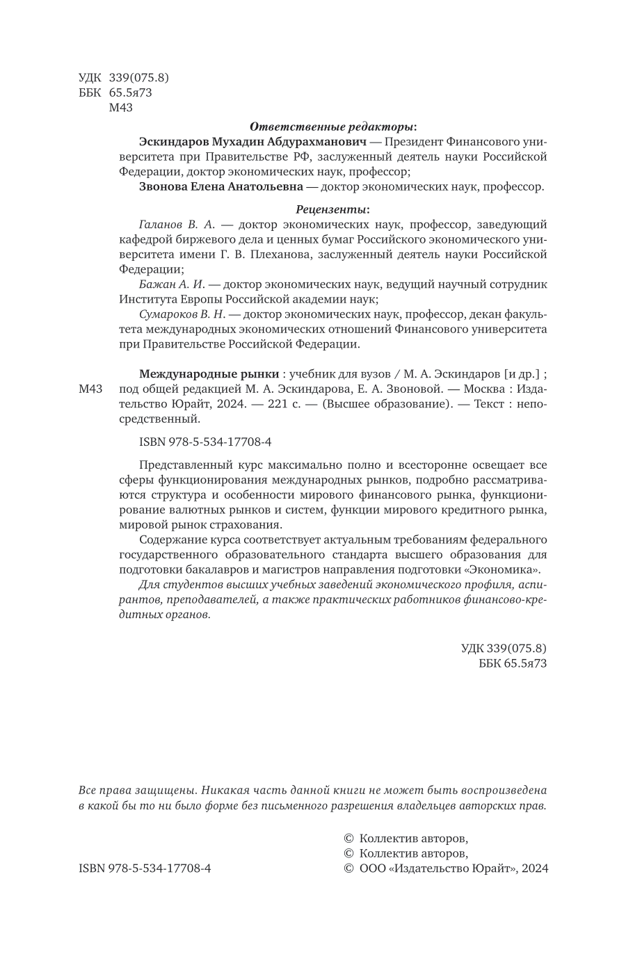 Международные рынки. Учебник для вузов (Эскиндаров Мухадин Абдурахманович; Звонова Елена Анатольевна; Игнатова Ольга Владимировна; Туруев Игорь Борисович; Антропов Владислав Владимирович), 2024