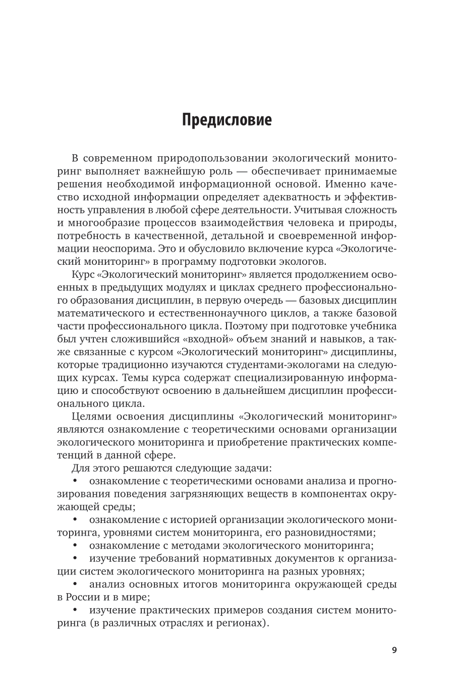 В курсе представлены теоретические основы организации экологического мониторинга, а также практические примеры мониторинга и использования полученных данных. Показана роль экологического мониторинга как источника информации для принятия решений в сфере управления природопользованием. Специальный раздел курса посвящен практике реализации экологического мониторинга на предприятиях нефтегазового комплекса России (производственный экологический мониторинг). Приведены примеры построения систем производственного экологического мониторинга при добыче, транспортировке и переработке углеводородов в различных условиях. Показаны прикладные возможности применения мониторинга для решения различных природоохранных задач. Соответствует актуальным требованиям федерального государственного образовательного стандарта среднего профессионального образования и профессиональным требованиям. Для студентов образовательных учреждений среднего профессионального образования, обучающихся по естественнонаучным и инженерным специальностям.