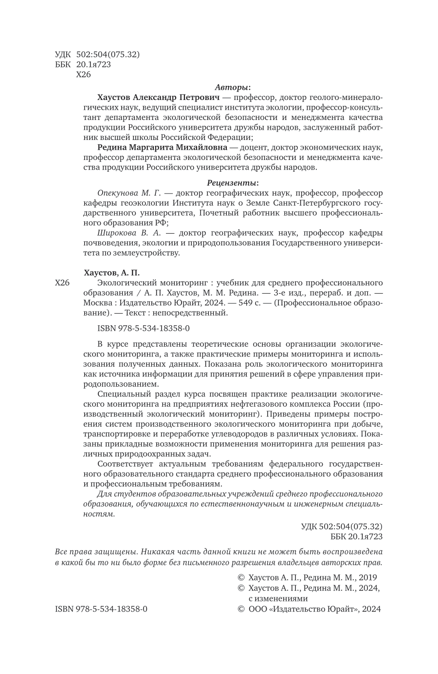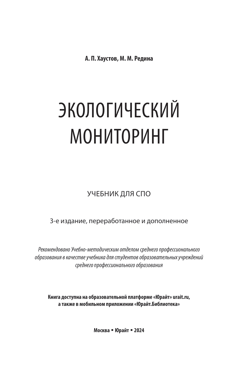 Экологический мониторинг 3-е изд. пер. и доп. Учебник для СПО (Маргарита Михайловна Редина); ЮРАЙТ, 2024