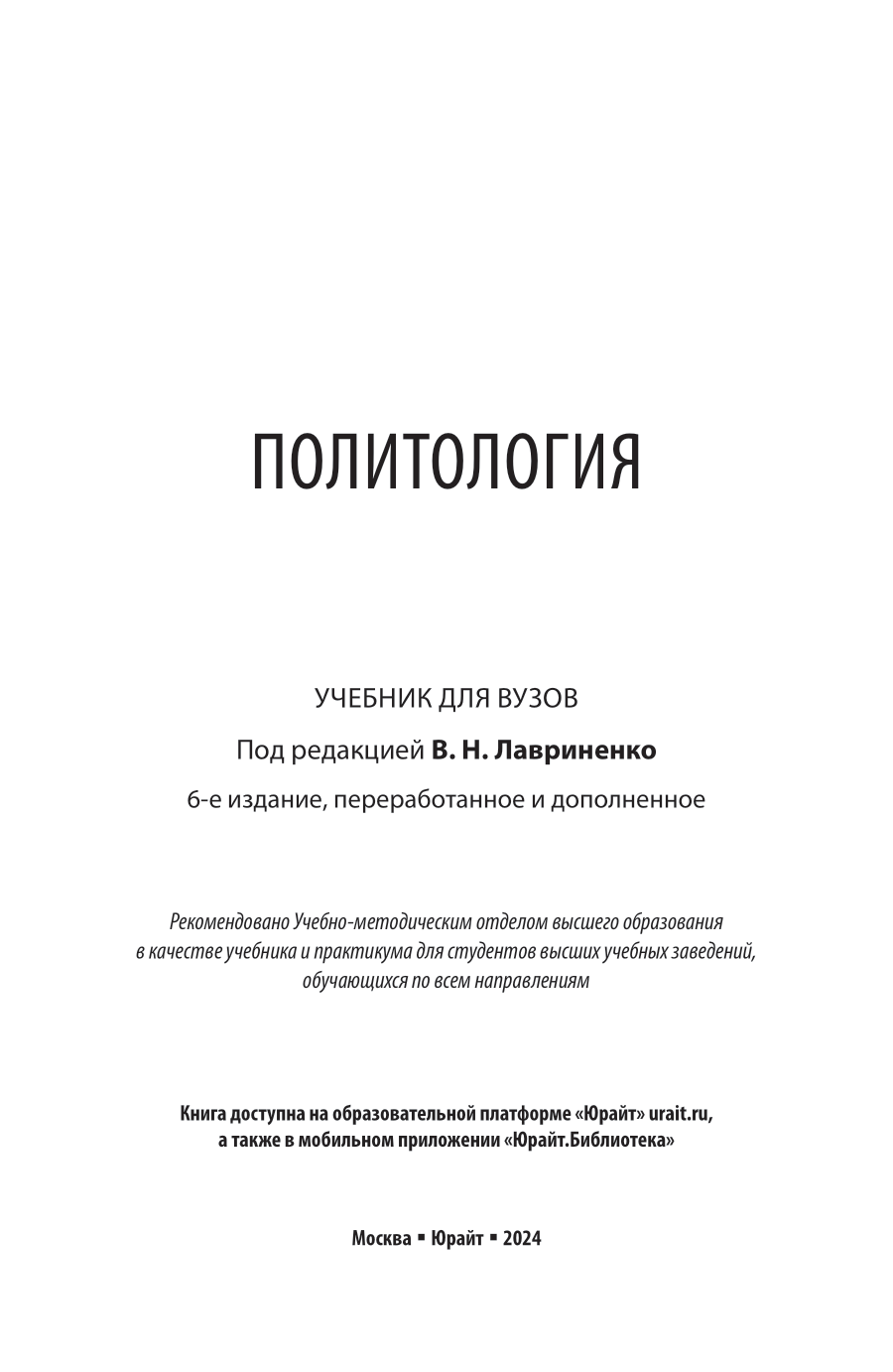 Политология 6-е изд. пер. и доп. Учебник для вузов (Олег Федорович Шабров); ЮРАЙТ, 2024