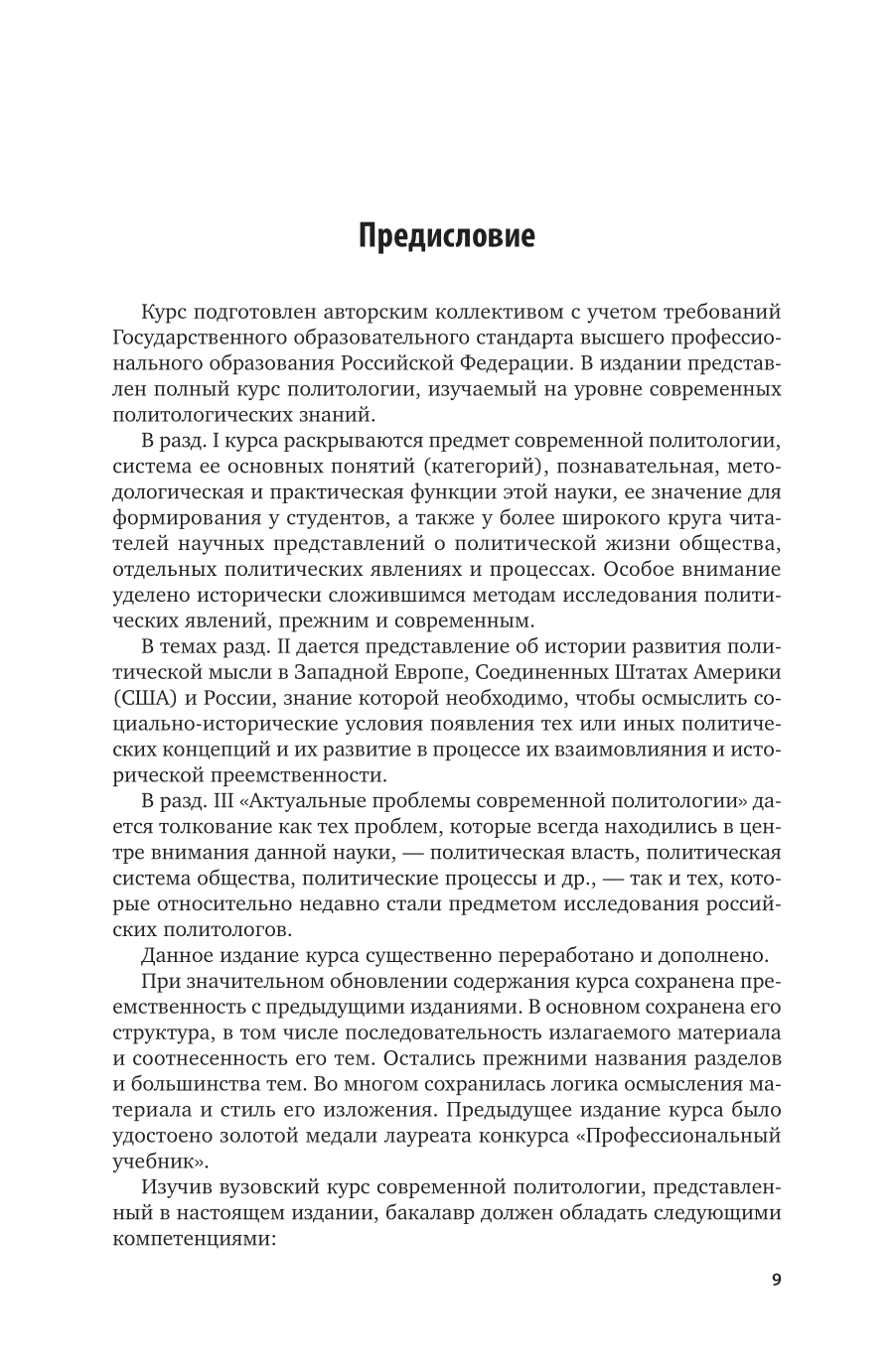 Авторами рассмотрены основные понятия (категории) политологии, ее общетеоретические и методологические проблемы. Значительное внимание уделено истории развития политической мысли и актуальным проблемам современной политической науки. Дается глубокое исследование политической системы общества и ее основных институтов, политических процессов, партий и партийных систем, политических элит, лидерства. Рассмотрены также особенности прикладной политологии и политические технологии. Соответствует актуальным требованиям федерального государственного образовательного стандарта высшего образования. Для студентов высших учебных заведений, обучающихся по гуманитарным направлениям и специальностям.