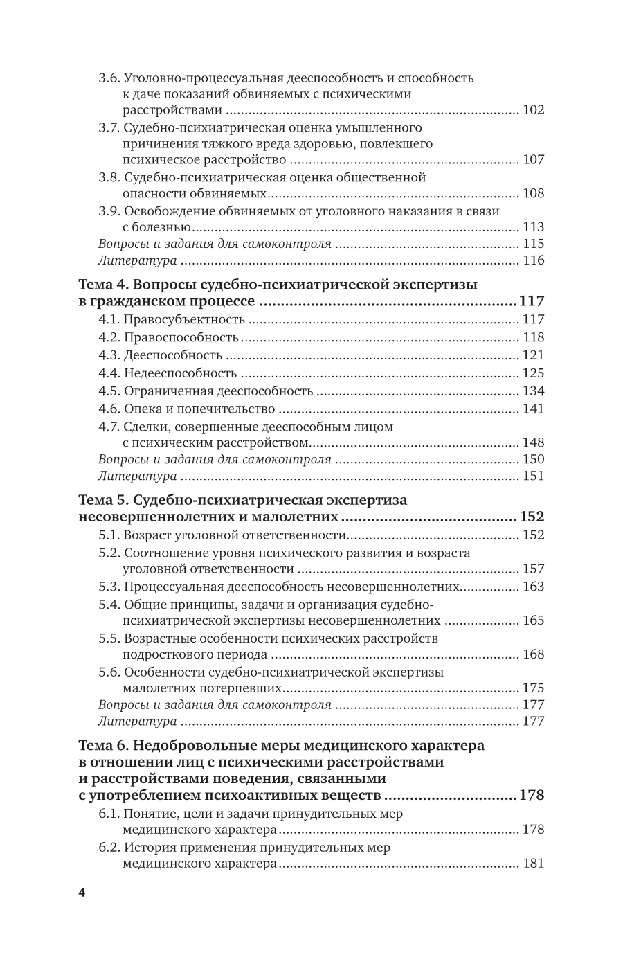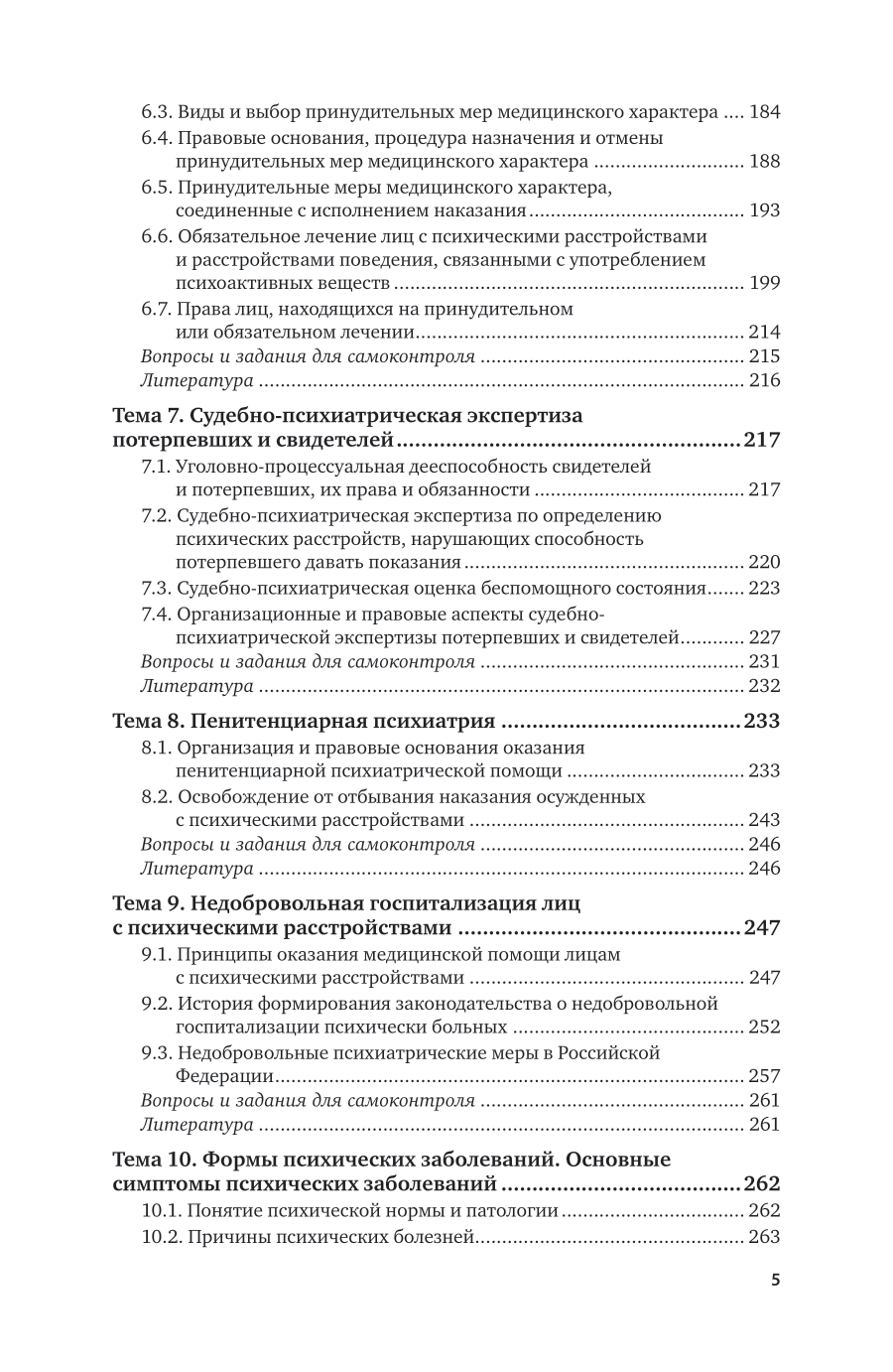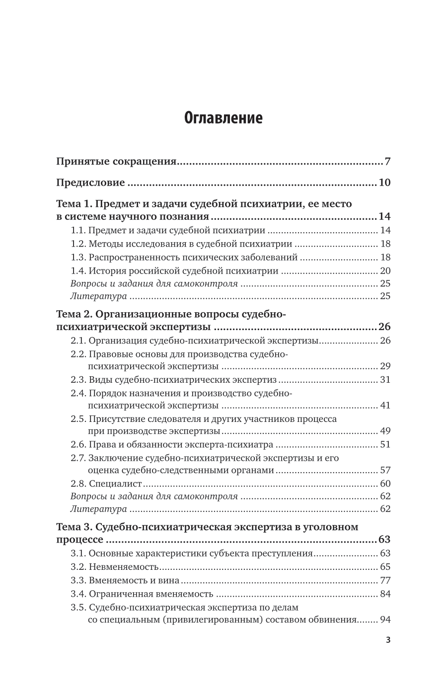 В курсе по судебной психиатрии формулируются цели, задачи и организационные принципы судебно-психиатрической экспертизы, ее правовые основания и виды, разбираются основные вопросы судебно-психиатрической экспертизы в уголовном и гражданском процессах, особенности пенитенциарной психиатрии, а также организационно-правовые основы недобровольного лечения лиц с психическими расстройствами, в том числе связанными с употреблением психоактивных веществ. Материал изложен с учетом действующего законодательства Российской Федерации. Соответствует актуальным требованиям федерального государственного образовательного стандарта среднего профессионального образования и профессиональным требованиям. Для студентов учебных заведений среднего профессионального образования, обучающихся по юридическим направлениям.