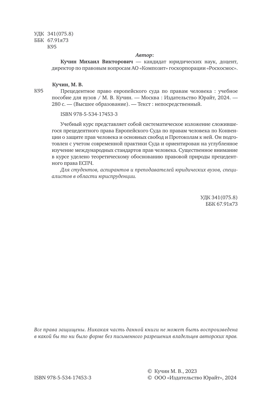 Прецедентное право европейского суда по правам человека. Учебное пособие для вузов (Михаил Викторович Кучин); ЮРАЙТ, 2024