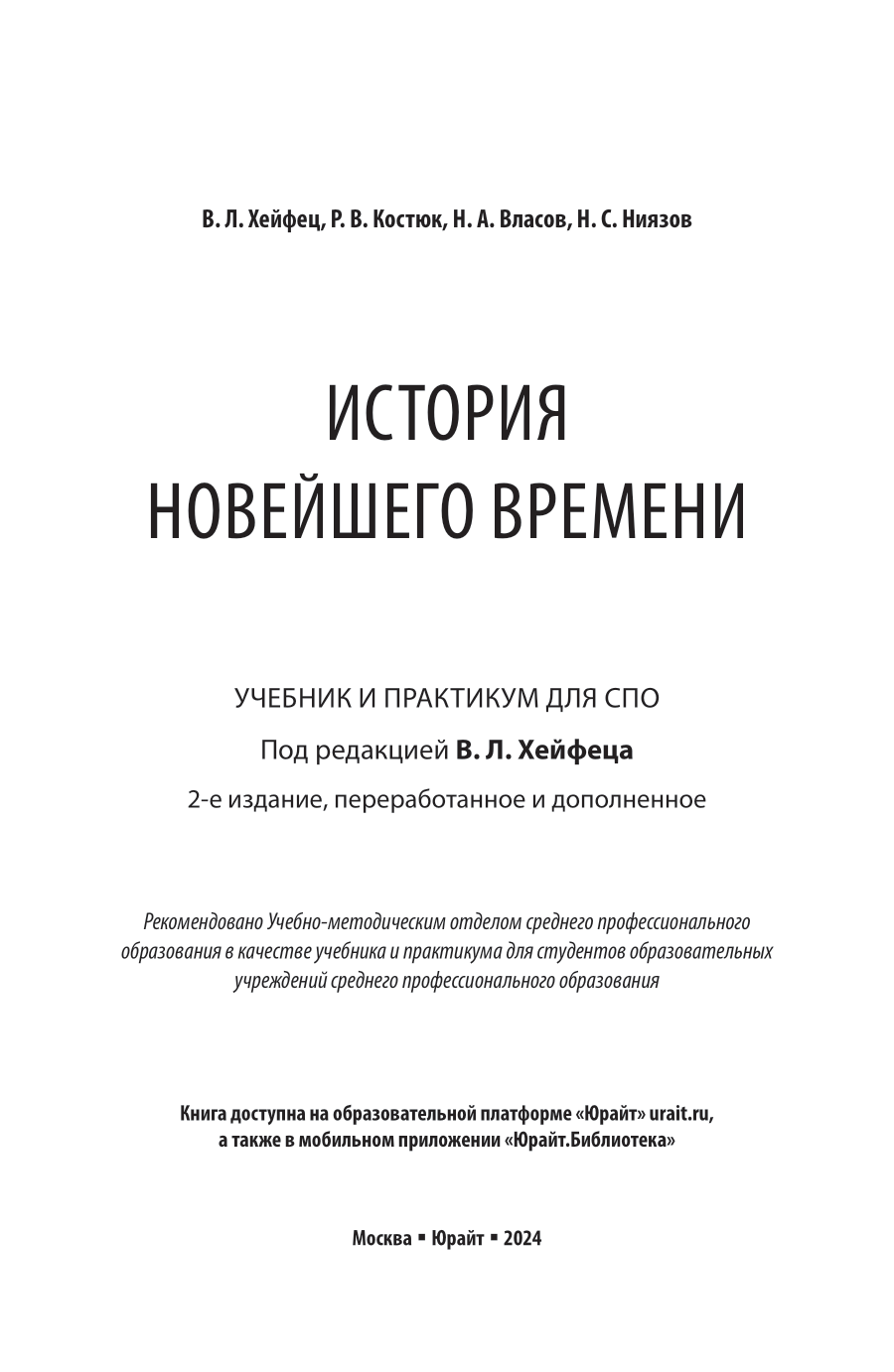 История новейшего времени 2-е изд. пер. и доп. Учебник и практикум для СПО (Николай Анатольевич Власов); ЮРАЙТ, 2024