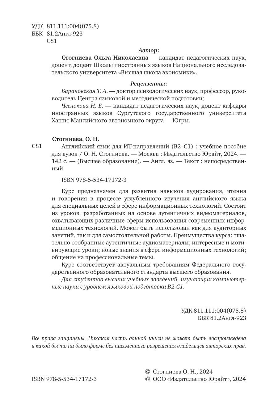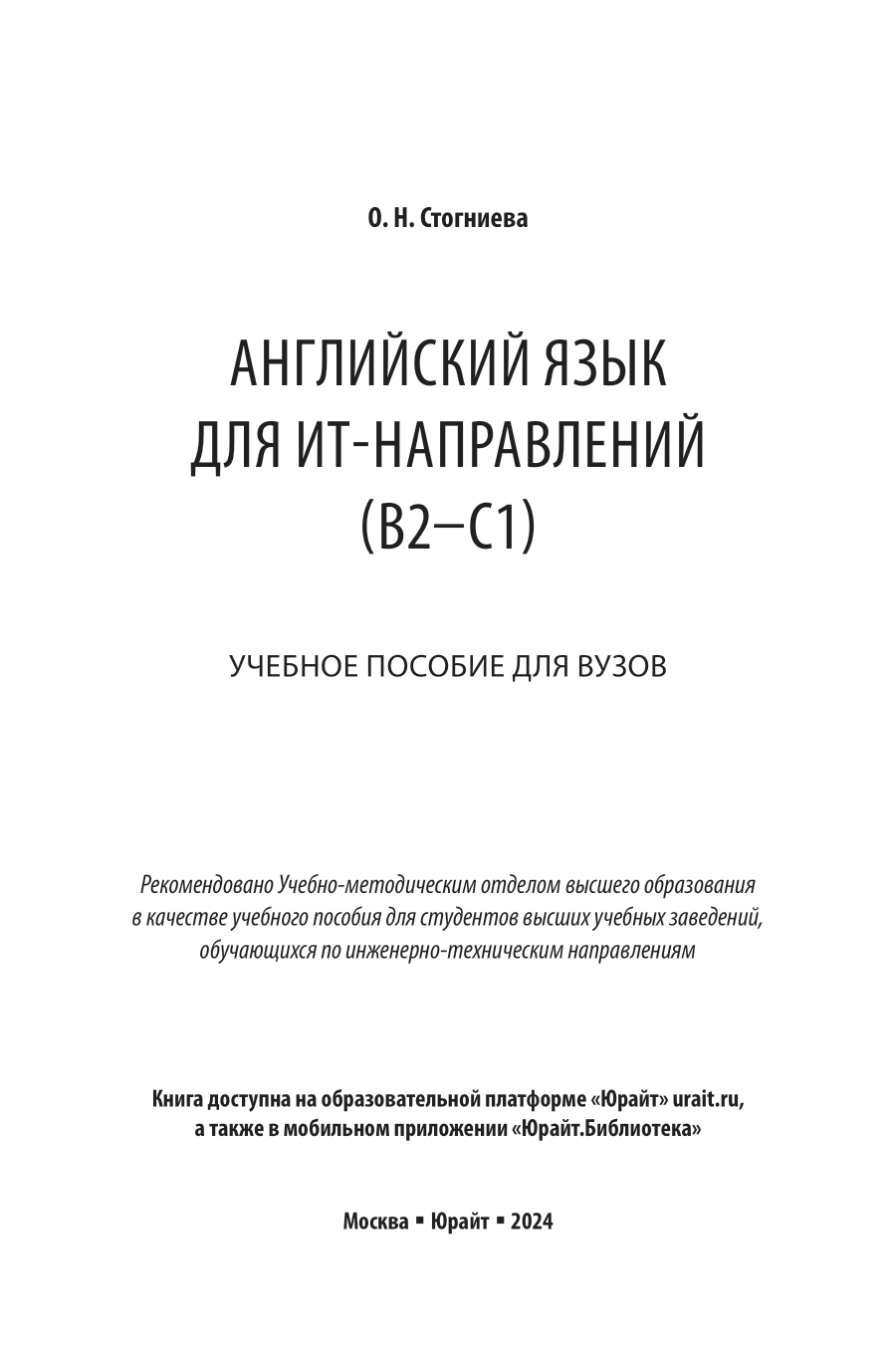 Английский язык для ИТ-направлений (B2-C1). Учебное пособие для вузов (Ольга Николаевна Стогниева); ЮРАЙТ, 2024
