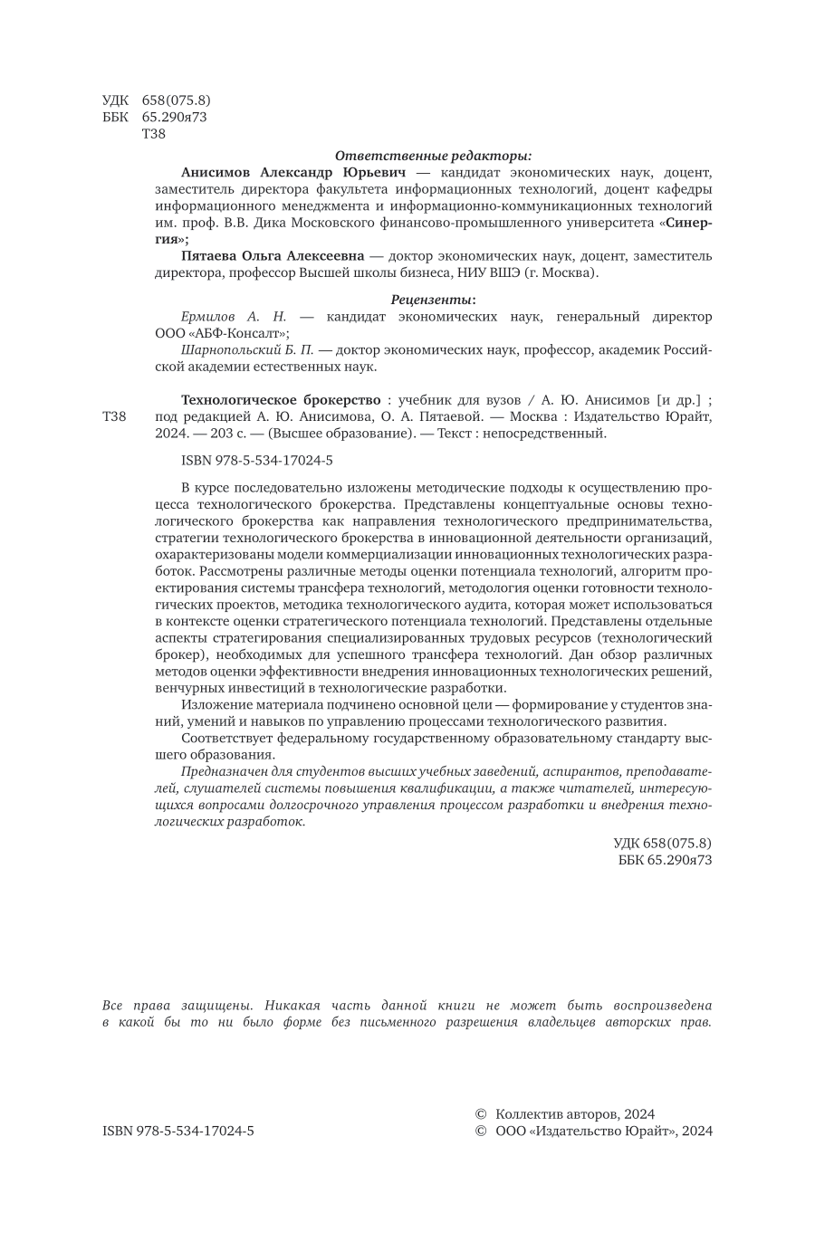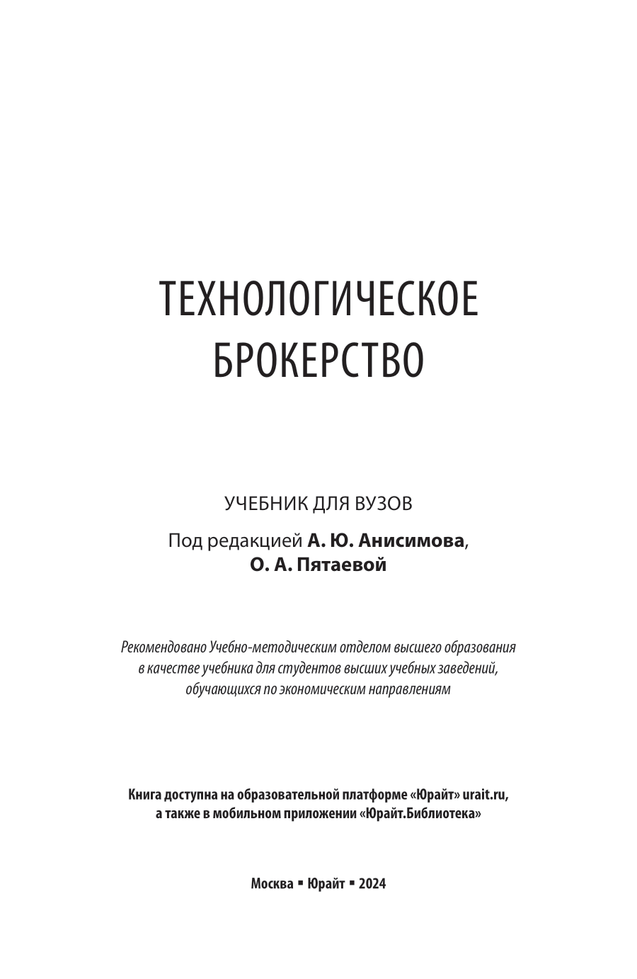 Технологическое брокерство. Учебник для вузов (Александр Юрьевич Анисимов); ЮРАЙТ, 2024