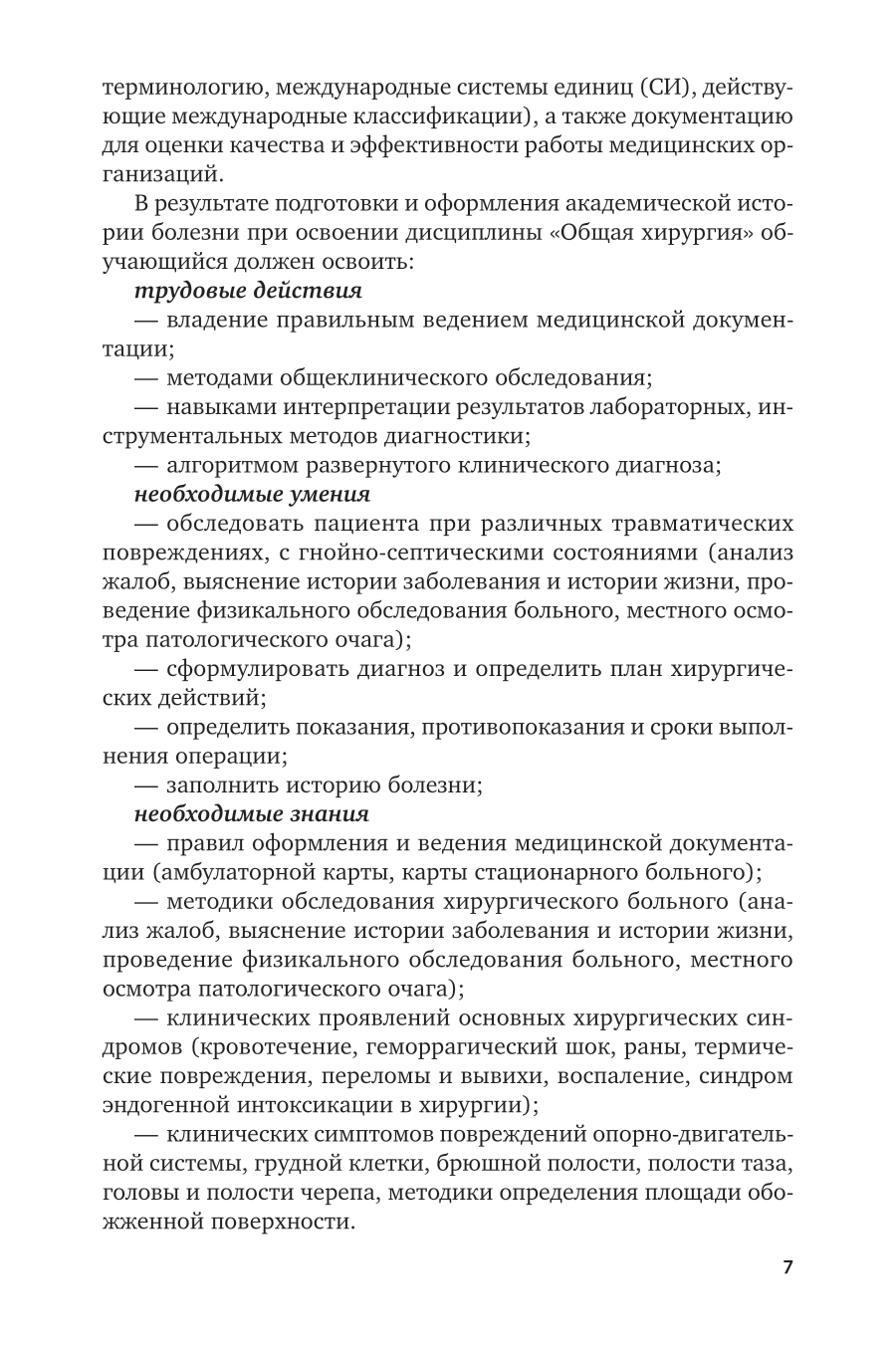 Несмотря на развитие компьютерных технологий, внедрение новейших методов обследования и стандартизованного подхода к вопросам диагностики и терапии заболеваний, залогом успеха в лечебном процессе остается непосредственное взаимодействие доктора и пациента. И своеобразным зеркалом этого взаимодействия является история болезни. В пособии отражено значение истории болезни как медицинского документа в лечебном процессе. Представлен алгоритм обследования пациента и оформления академической истории болезни в хирургической клинике, изложены клинические проявления основных хирургических синдромов и понятий. Особое внимание уделено оформлению медицинской документации в хирургии с учетом принятых в обществе моральных и правовых норм, правил врачебной этики, законов и нормативных правовых актов. В пособии нашел свое отражение как личный опыт автора, так и опыт работы всего коллектива хирургической клиники имени А. И. Кожевникова Нижегородской областной больницы. Соответствует актуальным требованиям федерального государственного образовательного стандарта среднего профессионального образования. Учебное пособие разработано для подготовки студентов медицинских учебных заведений, а также может быть использовано как справочный ресурс для клинических ординаторов и врачей любых специальностей, сталкивающихся в своей работе с пациентами хирургического профиля.
