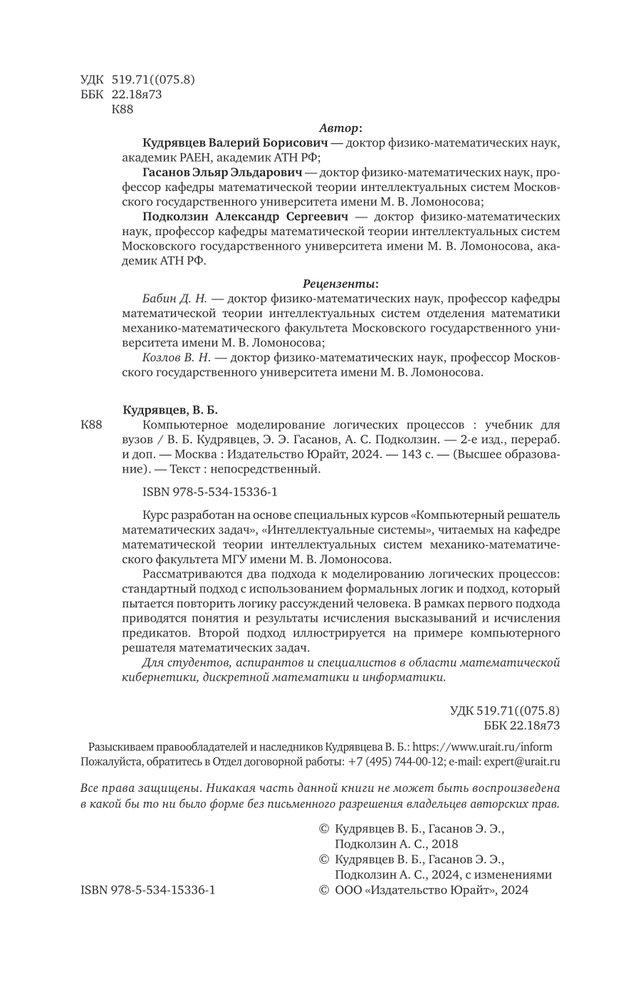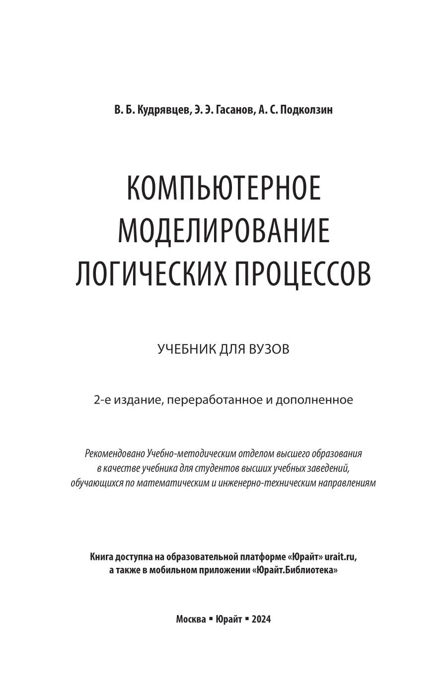 Компьютерное моделирование логических процессов 2-е изд. пер. и доп. Учебник для вузов (Валерий Борисович Кудрявцев); ЮРАЙТ, 2024