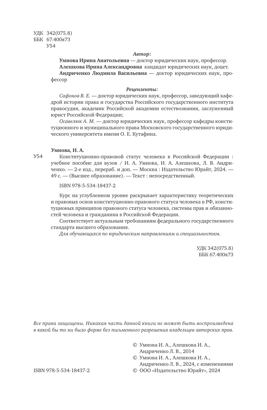 Конституционно-правовой статус человека в Российской Федерации 2-е изд. пер. и доп. Учебное пособие для вузов (Ирина Анатольевна Конюхова); ЮРАЙТ, 2024