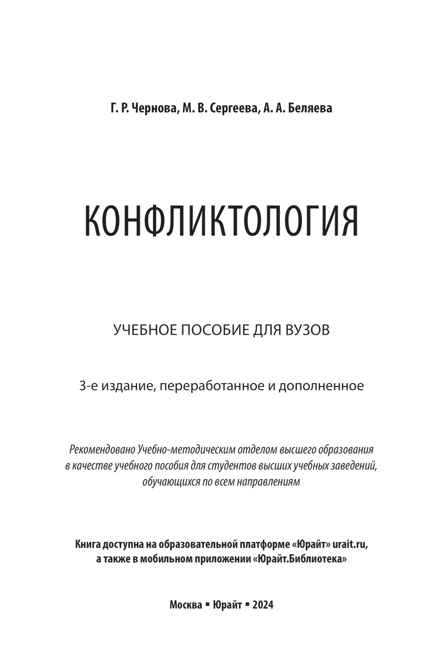 Конфликтология 3-е изд. пер. и доп. Учебное пособие для вузов (Галина Рафаиловна Чернова); ЮРАЙТ, 2024