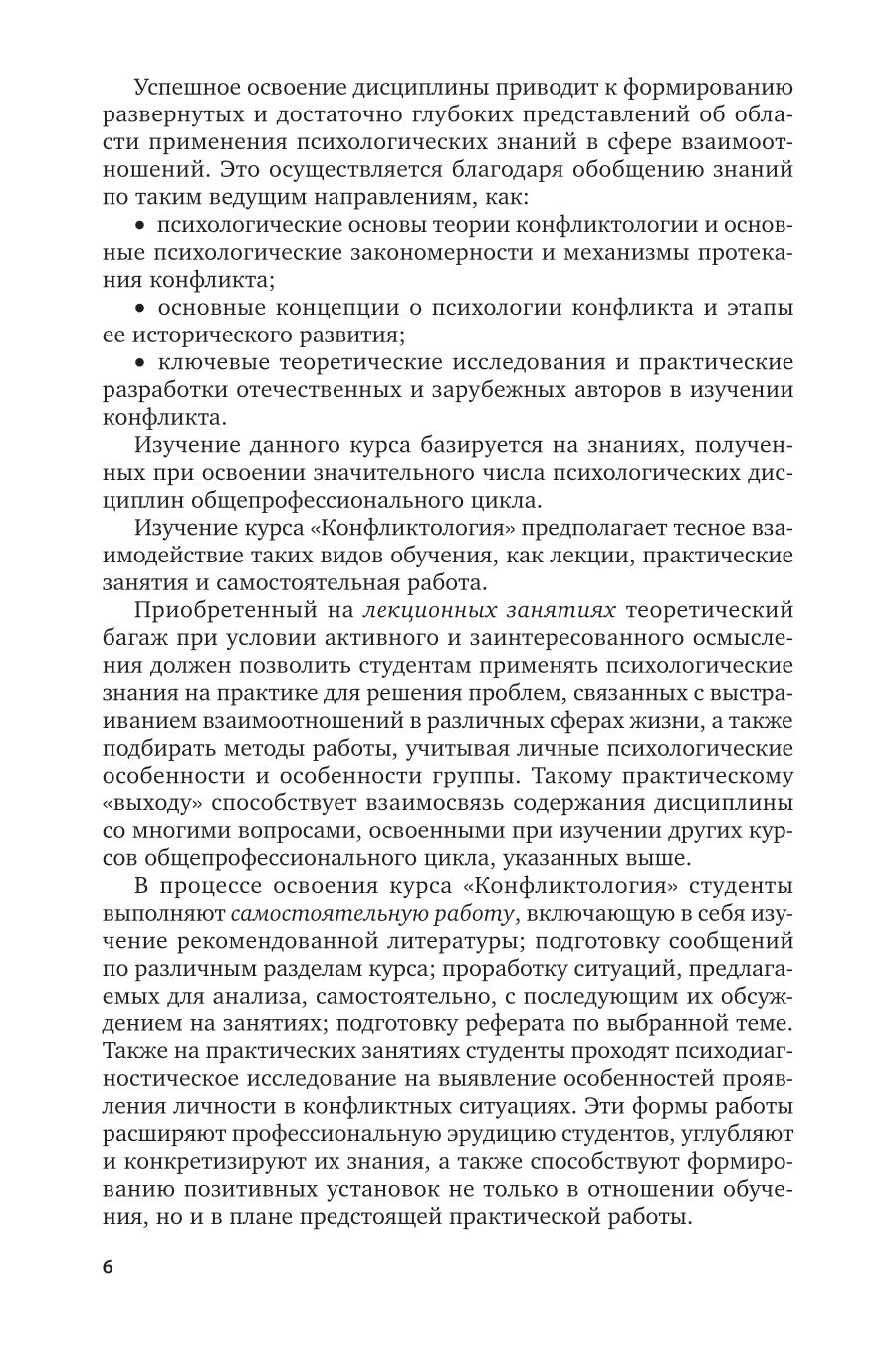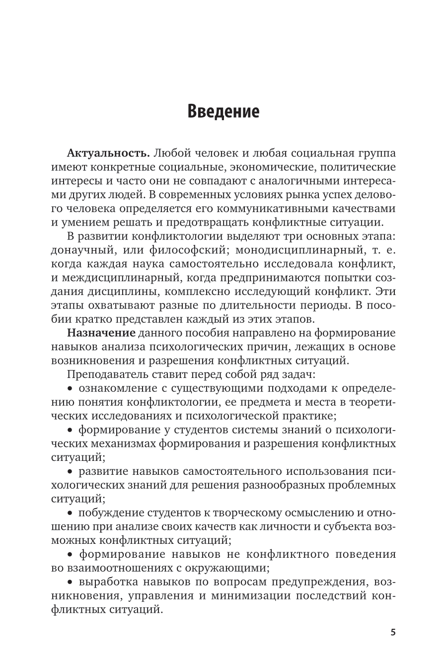 Совершенно очевидно, что конфликт - не только факт нашей жизни, но и фактор, который может внести в нее существенные коррективы. Конфликтология, имея в своем арсенале теоретические и практические знания, необходимые каждому человеку, стремится помочь людям эффективно действовать в конфликтных ситуациях, прежде всего не страшась конфликта. Она обучает средствам и методам их разрешения. В данном пособии содержатся учебные тексты по темам курса «Конфликтология», способствующие углублению и структурированию знаний студентов, приступающих к изучению новой дисциплины. Также включены материалы методического характера, целевая и содержательная характеристика курса в его теоретической и практической частях. Соответствует актуальным требованиям федерального государственного образовательного стандарта высшего образования. Для студентов высших учебных заведений, обучающихся по всем направлениям.