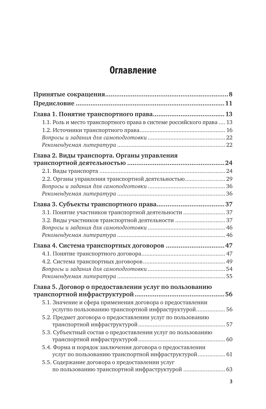Учебник отражает современное состояние юридической науки. Темы излагаются в последовательности, которая ориентирует на творческое усвоение основополагающих понятий и правовых конструкций. Материал расположен так, чтобы число преждевременных обращений к еще незнакомой проблематике и повторов было бы минимальным. В издании нашли отражение узловые проблемно-методологические вопросы современного транспортного права, что позволяет стимулировать не только учебную, но и научную деятельность.