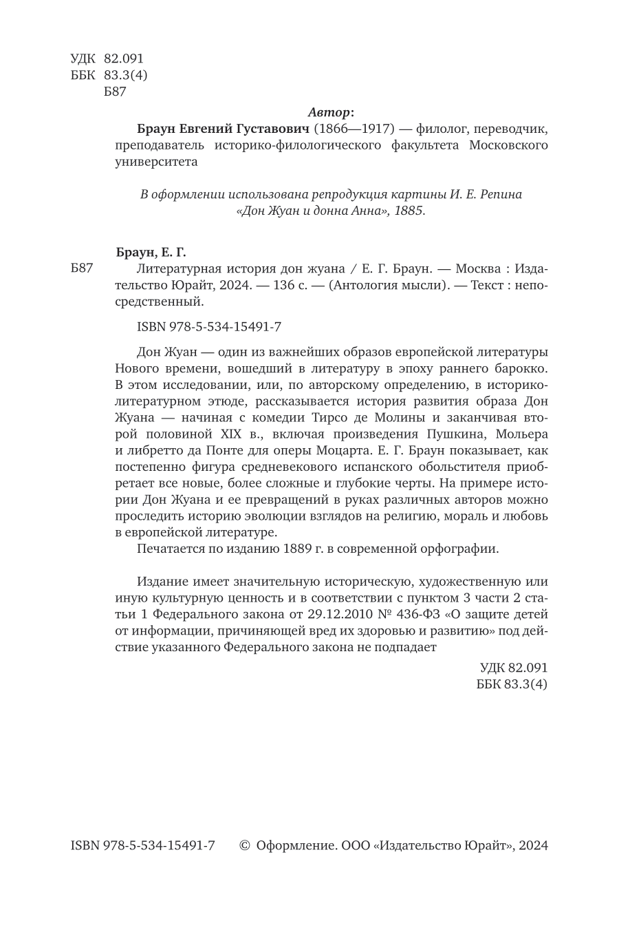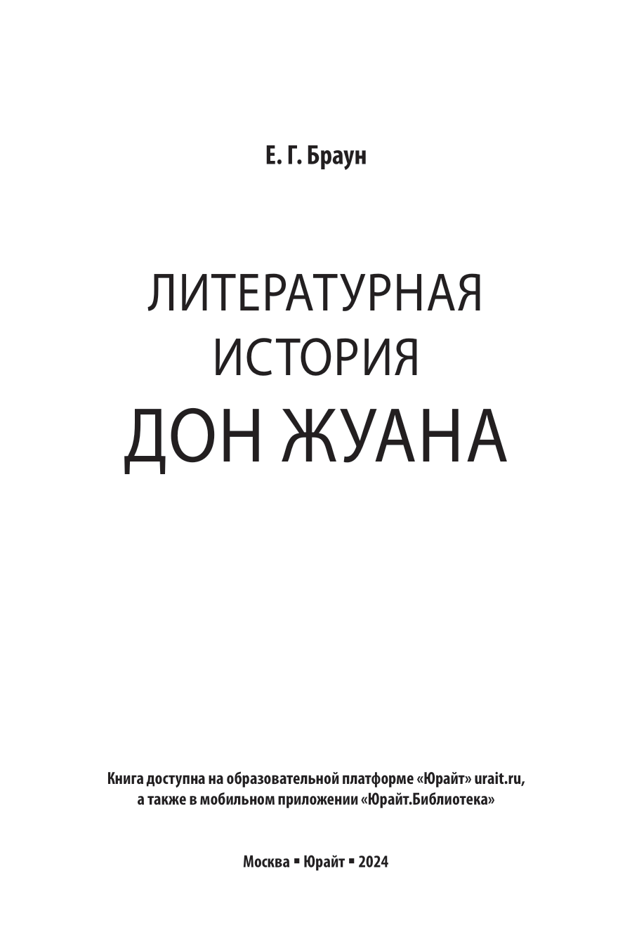 Литературная история Дон Жуана (Евгений Густавович Браун); ЮРАЙТ, 2024