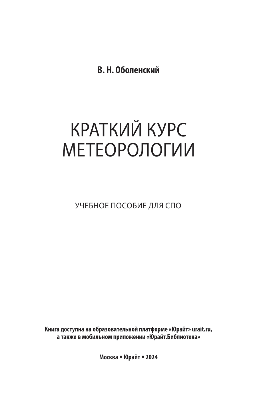 Краткий курс метеорологии. Учебное пособие для СПО (Владимир Николаевич Оболенский); ЮРАЙТ, 2024