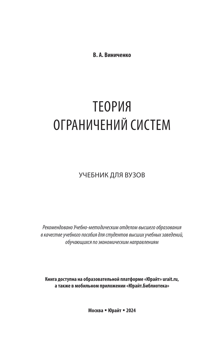 Теория ограничений систем. Учебник для вузов (Виктория Александровна Виниченко); ЮРАЙТ, 2024