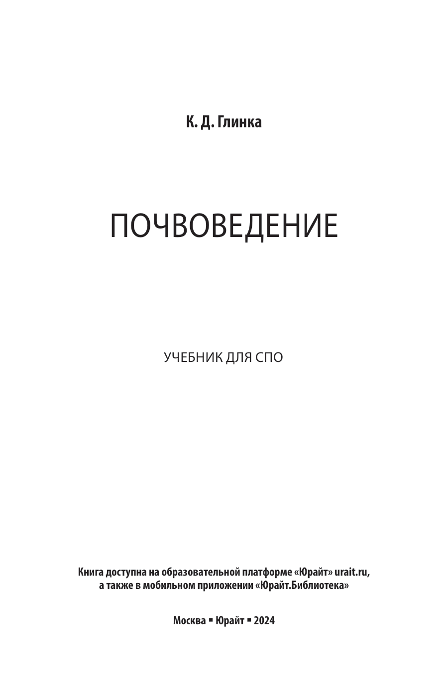 Почвоведение. Учебник для СПО (Константин Дмитриевич Глинка); ЮРАЙТ, 2024