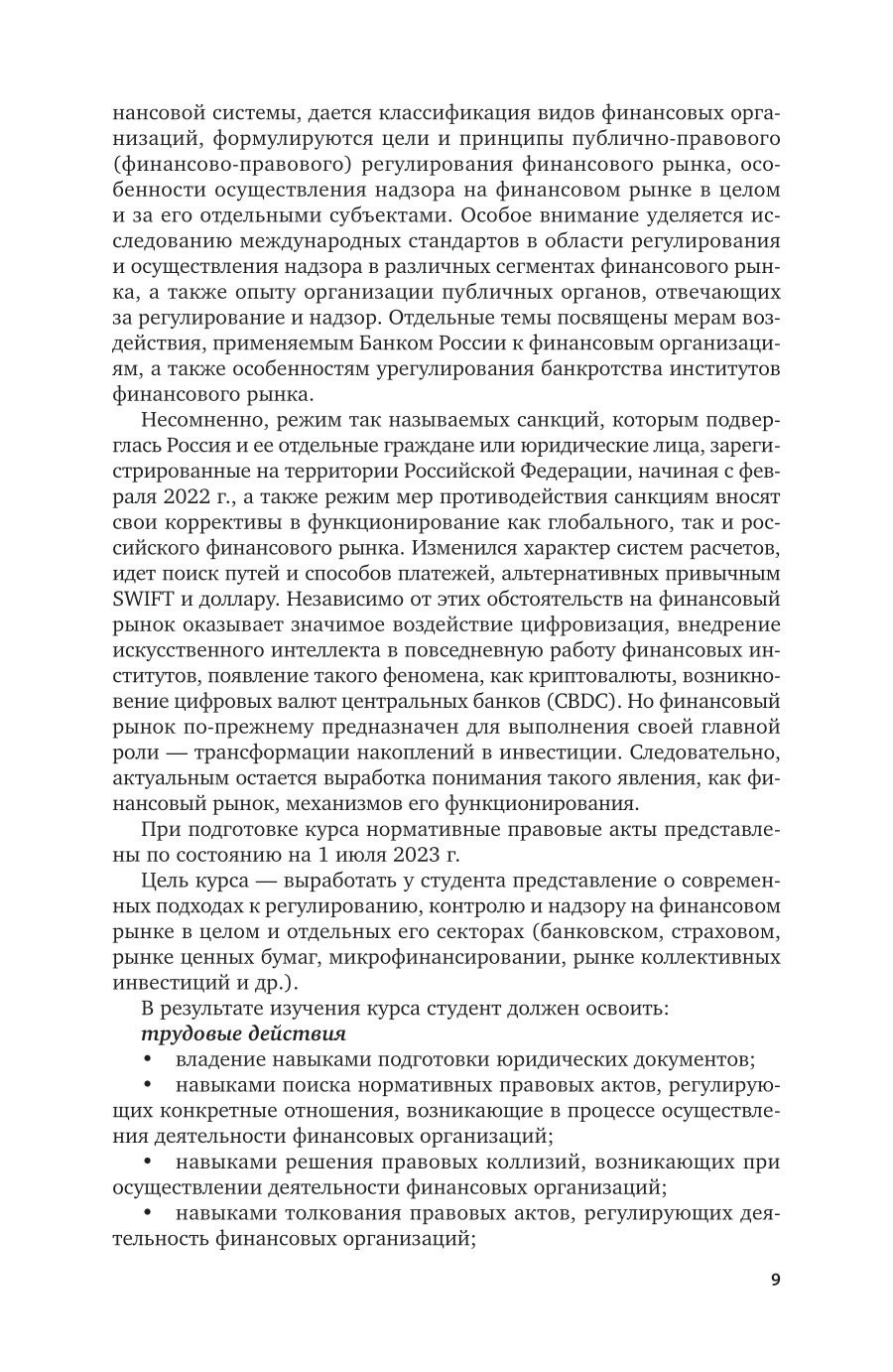 Издание является первым в отечественной правовой науке учебным пособием, посвященным вопросам публично-правового регулирования финансового рынка, в том числе вопросам правового регулирования контроля и надзора. Особое внимание уделяется банковскому сектору, страхованию, рынку ценных бумаг, рынку коллективных инвестиций, микрофинансовой деятельности, а также организациям инфраструктуры финансового рынка. Отдельные главы посвящены вопросам правового регулирования контроля и надзора в системе финансового рынка и мерам воздействия, применяемым Банком России к финансовым организациям, а также особенностям урегулирования банкротства институтов финансового рынка. Учебное пособие учитывает как международно-признанные стандарты регулирования и осуществления надзора на финансовом рынке, так и действующее российское законодательство. Соответствует актуальным требованиям федерального государственного образовательного стандарта среднего профессионального образования и профессиональным требованиям. Для студентов образовательных учреждений среднего профессионального образования, обучающихся по юридическим и экономическим специальностям, преподавателей, а также практических работников.