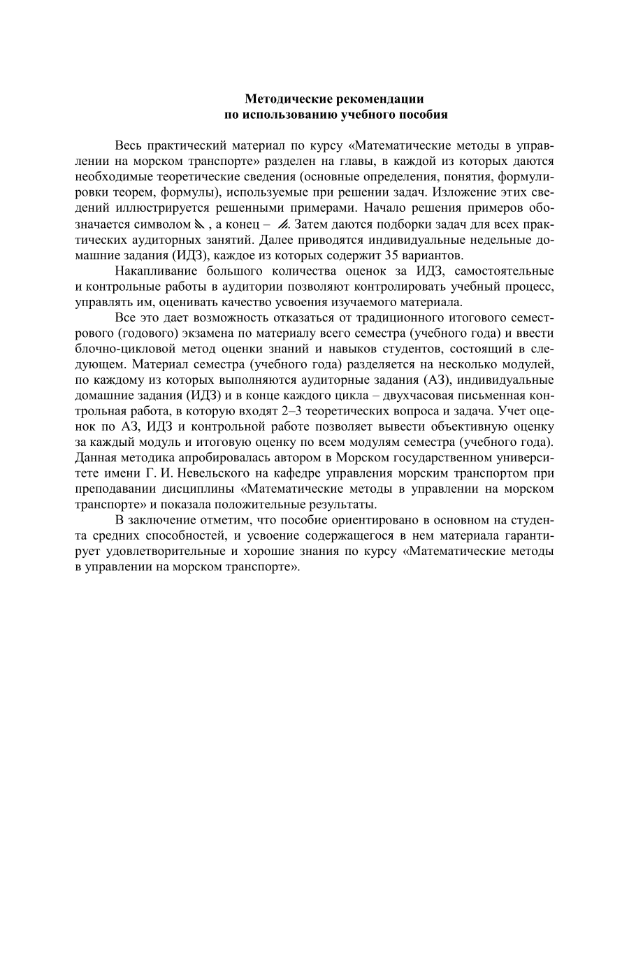 В учебном пособии содержится материал по моделированию производственных систем, моделированию различных типов распределительных задач и способам их оптимизации. В нем рассматриваются различные типы задач как линейного, так и нелинейного программирования, широко применяющиеся в работе морского транспорта и порта, а также вопросы сетевого планирования работы морского транспорта. Особое внимание уделяется задаче о максимальном потоке, построению и анализу сетевых графиков, различным способам задания сетевого графика и методам их оптимизации.