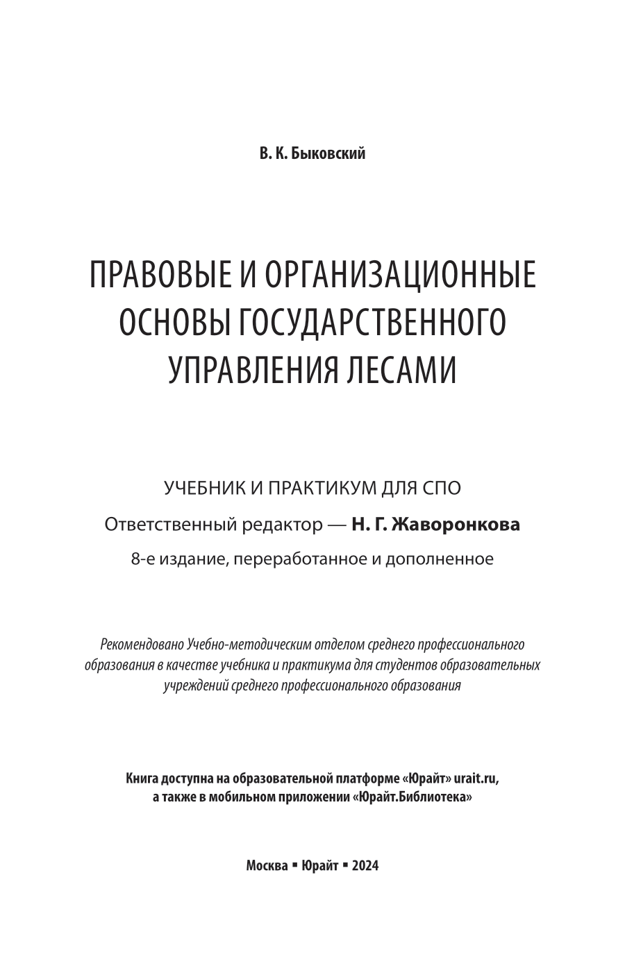Правовые и организационные основы государственного управления лесами 8-е изд. пер. и доп. Учебник и практикум для СПО (Наталья Григорьевна Жаворонкова); ЮРАЙТ, 2024