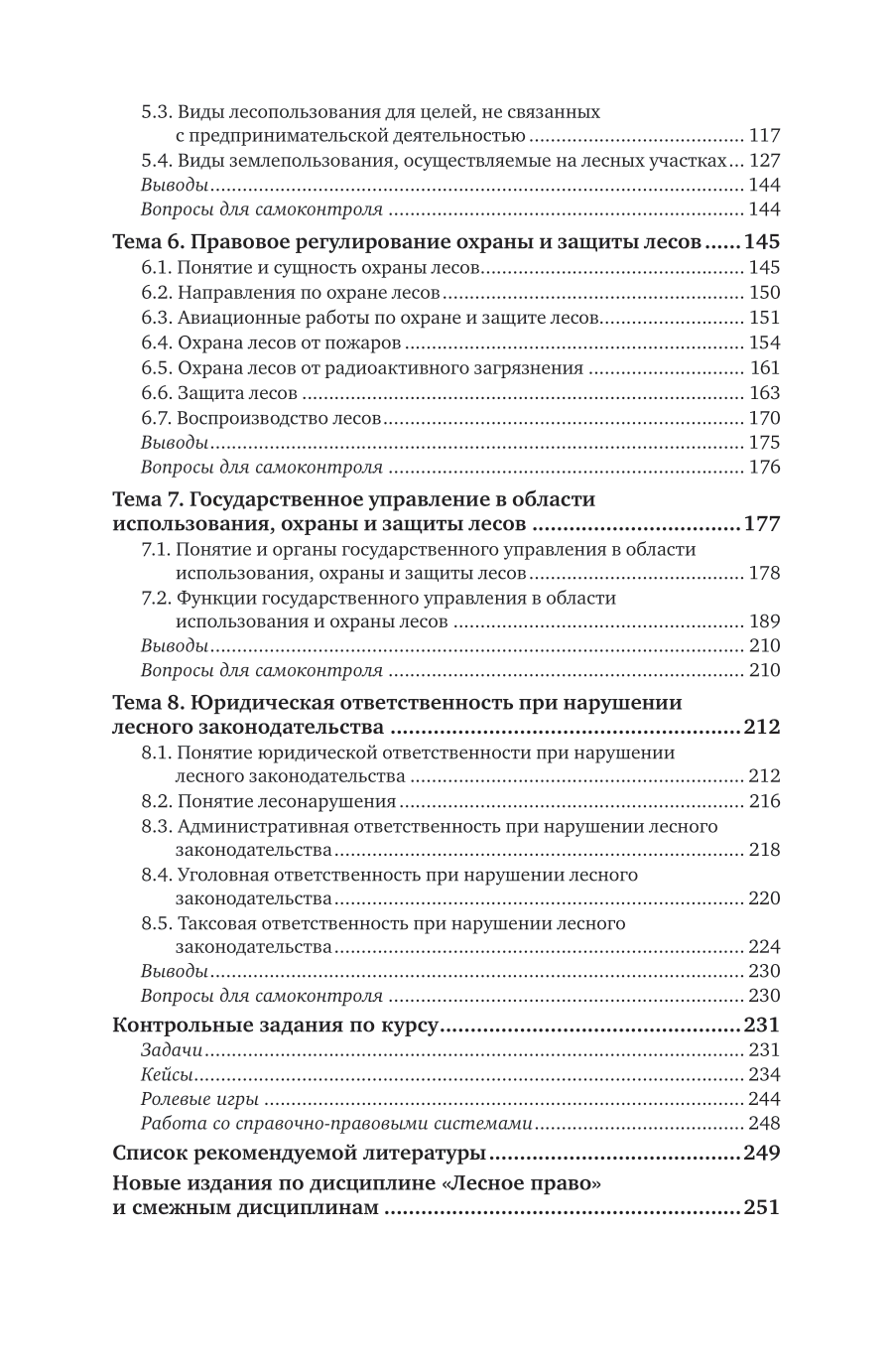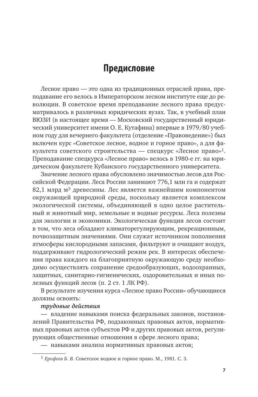 В учебнике на основании действующего законодательства проанализированы основополагающие положения и институты лесного права. Определено место лесного права в системе отраслей российского права. Рассмотрены функции государственного управления в области использования, охраны и защиты лесов. Приводятся понятие и классификация лесонарушений и меры юридической ответственности при их совершении (уголовной, административной и таксовой). Учебник может быть полезен при изучении таких дисциплин, как «Экологическое право», «Земельное право», «Природоресурсное право», «Лесное право» и др. Соответствует актуальным требованиям Федерального государственного образовательного стандарта среднего профессионального образования и профессиональным требованиям. Для студентов образовательных учреждений среднего профессионального образования, обучающихся по юридическим и лесным направлениям, а также преподавателей, специалистов в сфере лесного хозяйства, научных работников, государственных служащих и всех интересующихся лесным правом.