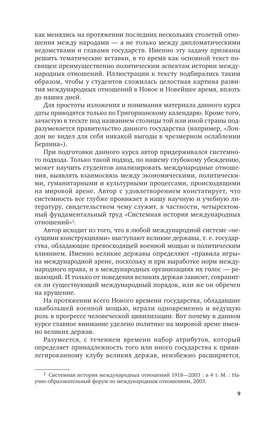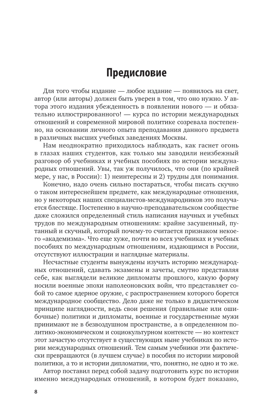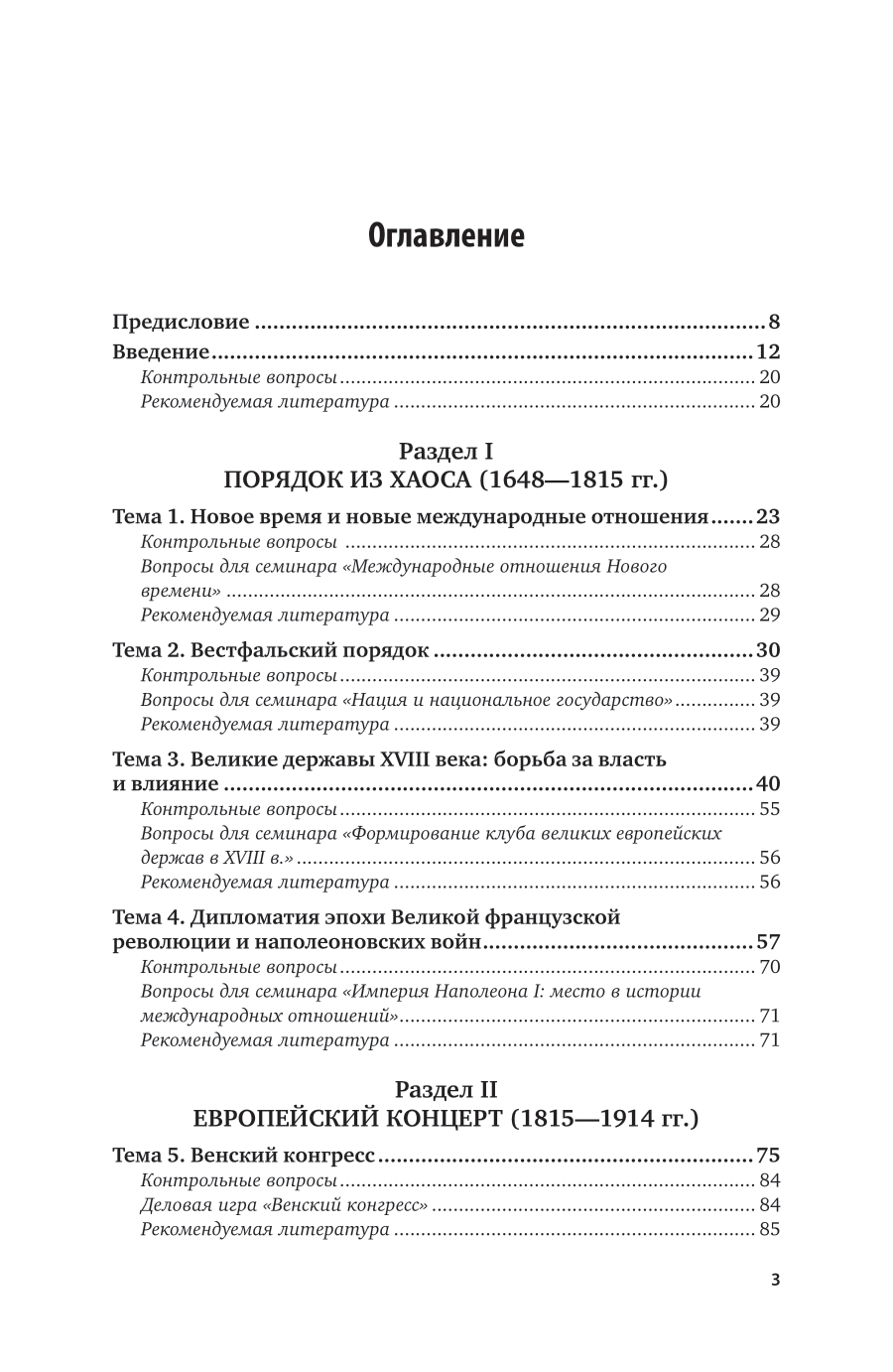 Курс наглядно передает историю международных отношений Нового и Новейшего времени. В нем через призму системы международных отношений раскрывается история не только мировой политики, но и факторов, которые влияют на ее современное состояние. Благодаря вопросам для семинаров и деловым играм можно как закрепить знания по дисциплине, так и развить умение использовать их в профессиональной деятельности в области международных отношений и мировой политики. Соответствует актуальным требованиям федерального государственного образовательного стандарта высшего образования. Для студентов высших учебных заведений, обучающихся по гуманитарным направлениям и специальностям.