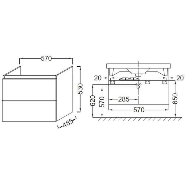 Тумба 57 см для раковины-столешницы Е4778. Ш57*Г48,5*В53 см. 2 выдвижных ящика с механизмом «плавное закрывание». 1 съемный органайзер.Зеркало и раковина E4731 заказываются отдельно. Цвет белый блестящий