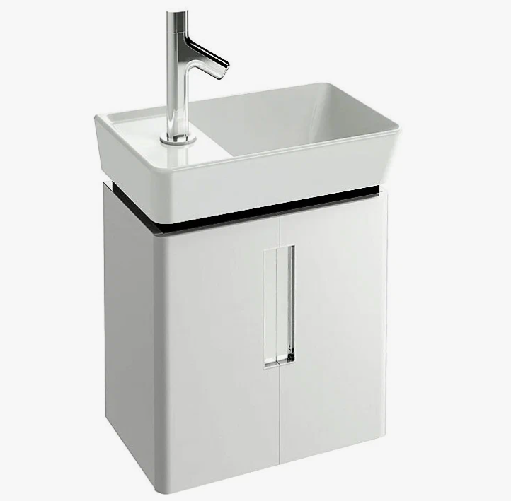 Тумба для рукомойника E4805. Ш41,8*Г25,5*В44,5 см. Две дверцы. Зеркало и раковина заказываются отдельно. Цвет белый блестящий лак