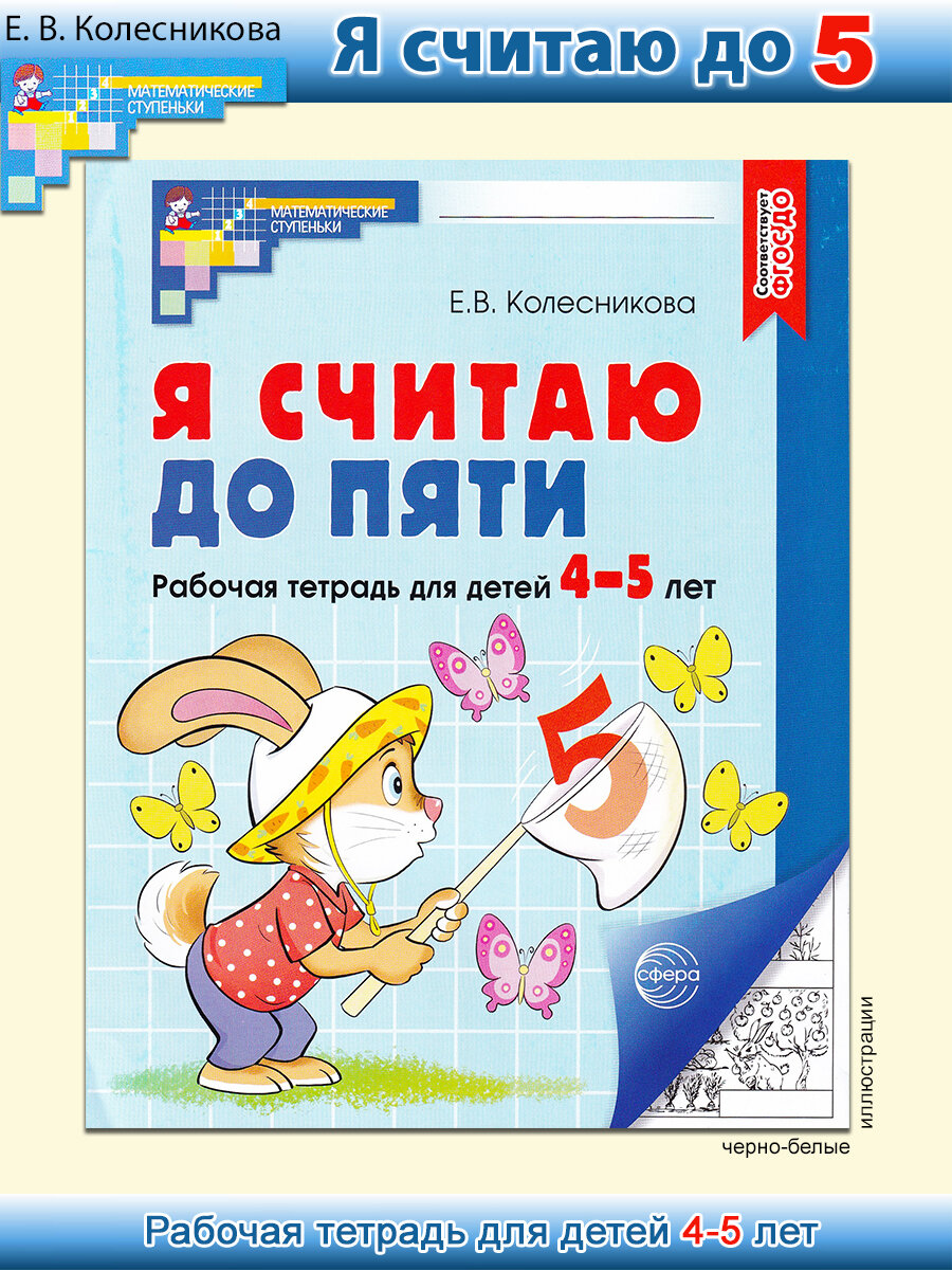 Я считаю до 5. Рабочая тетрадь для выполнения заданий по книге "Математика для детей 4-5 лет" (Елена Владимировна Колесникова); ТЦ Сфера, 2019
