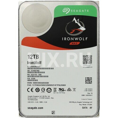 Жесткий диск SEAGATE Ironwolf 12Тб HDD SATA III 3.5" ST12000VN0007