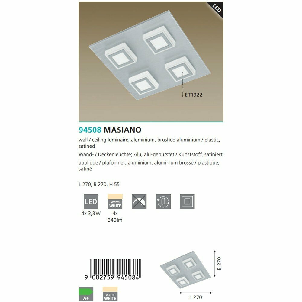 - Светильник потолочный EGLO 82957 (EGLO 94508 MASIANO) обзор