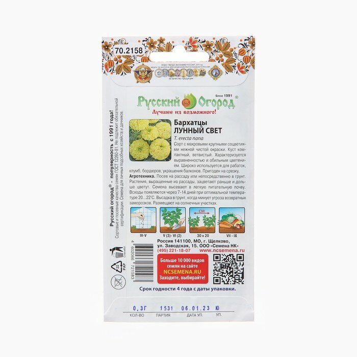 Бархатцы Лунный свет Русский огород