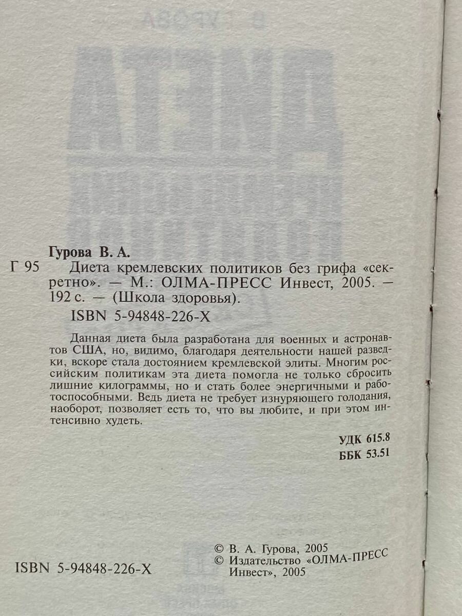 Диета кремлевских политиков без грифа "Секретно" (Гурова Вилена Александровна); ОлмаМедиаГрупп/Просвещение, 2007