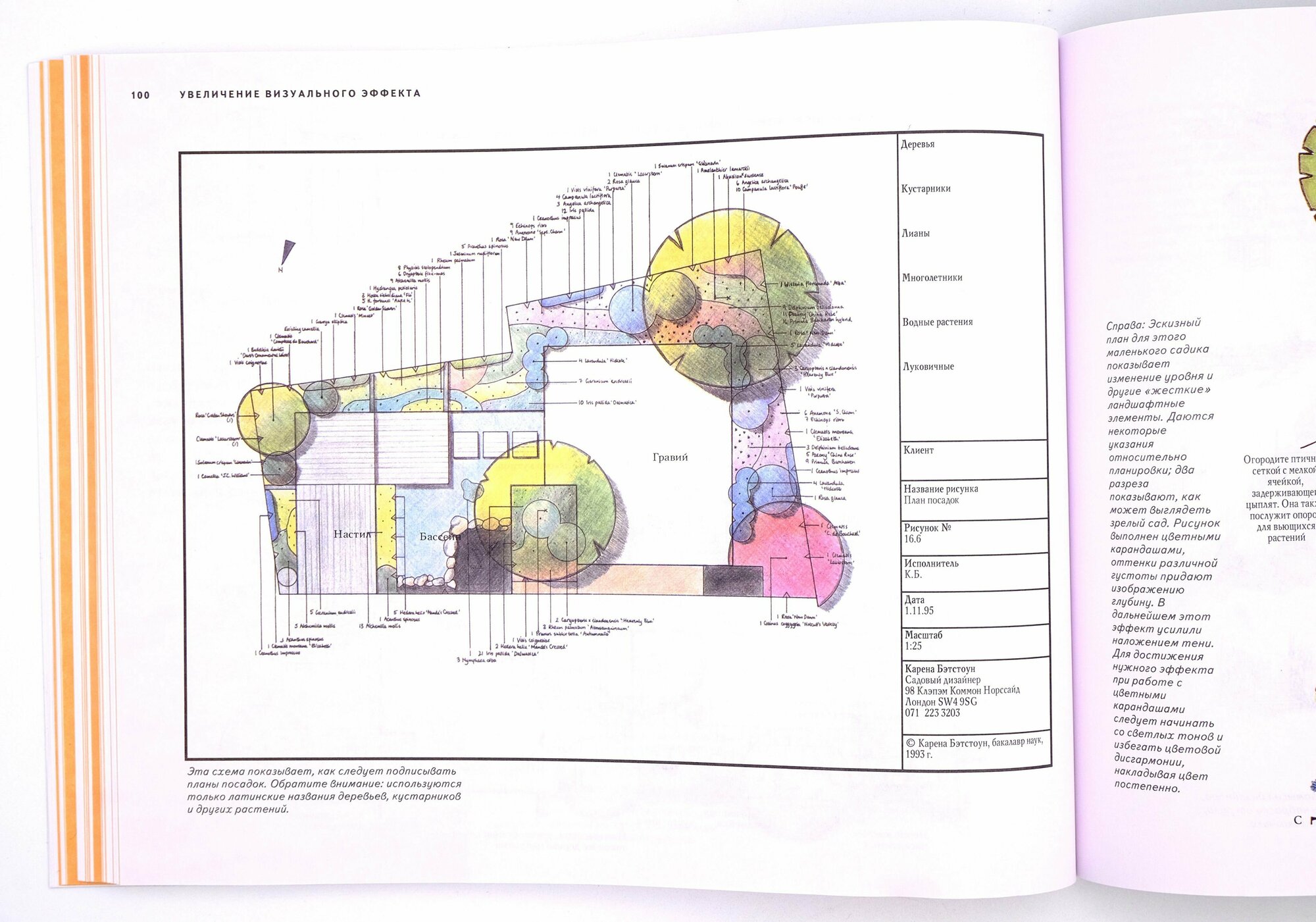 "Дизайн сада. Профессиональный подход" - это подробный справочник по ландшафтному дизайну. Книга дает всестороннее представление о том, как создавать самые разнообразные сады, начиная с изучения участка и проведения подготовительных работ и заканчивая презентацией готового проекта. Здесь вы найдете: - более сотни планов, рисунков, диаграмм и фотографий - практические советы, полезную информацию и описание технических приемов - пошаговое руководство по созданию профессиональных планов и чертежей.